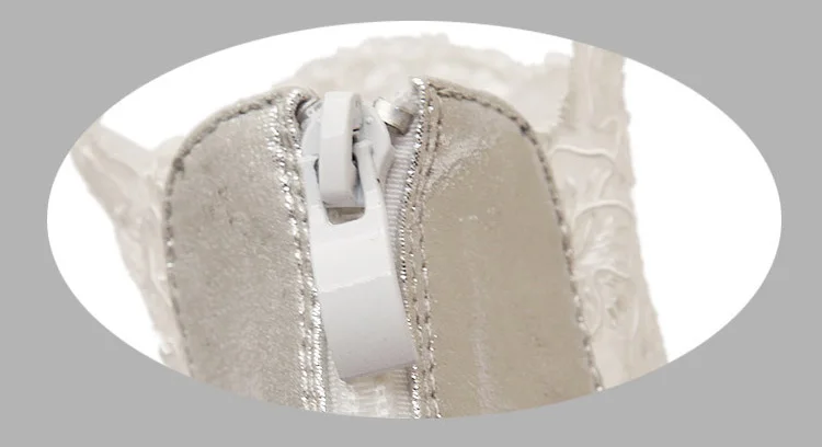 Женские туфли на танкетке, кружевные туфли на толстой подошве, туфли с открытым носком, высокий каблук, серебристо-белый цвет