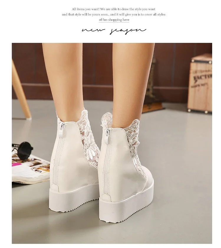 Туфли-лодочки женские кружевные, на танкетке, белые, 34-39, 2021