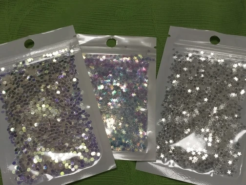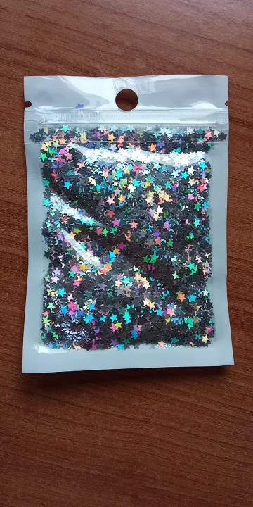 Страна: UA Color: laser silver Size: 3mm PET 8g Доставка: Cainiao Super Economy 22.12.2021