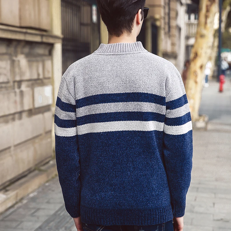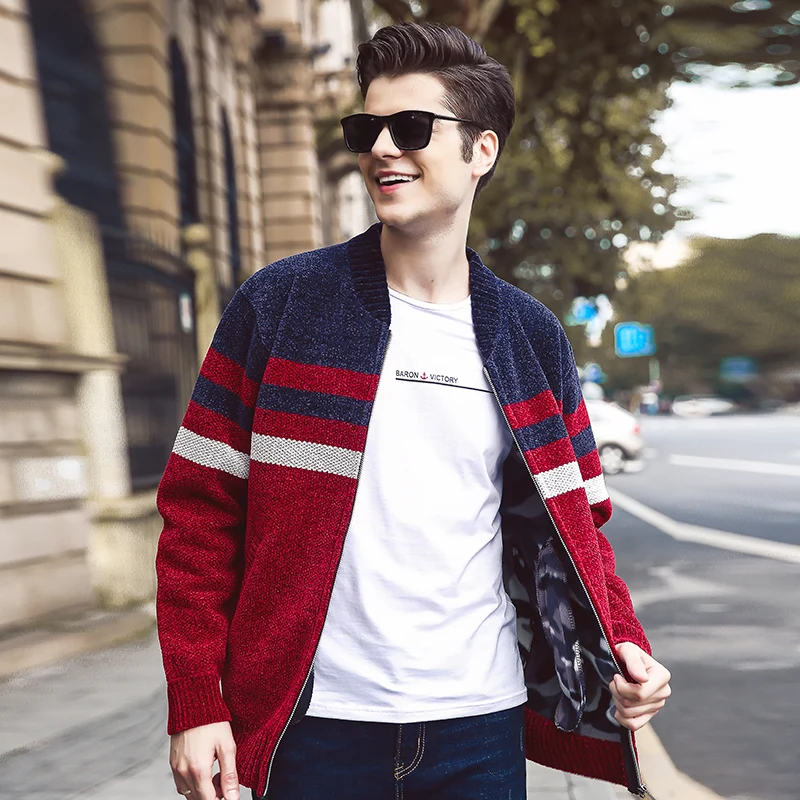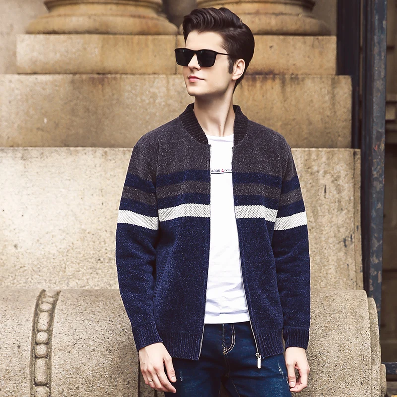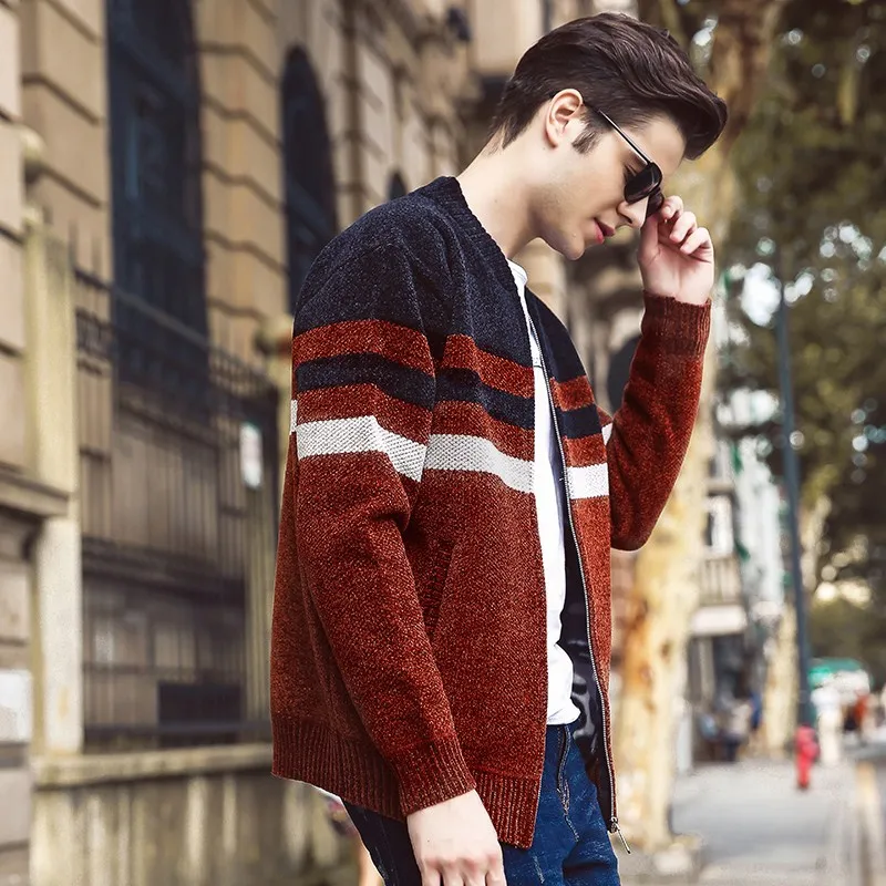Мужской Повседневный Кардиган, джемпер в полоску с карманами, Осень-зима 2019