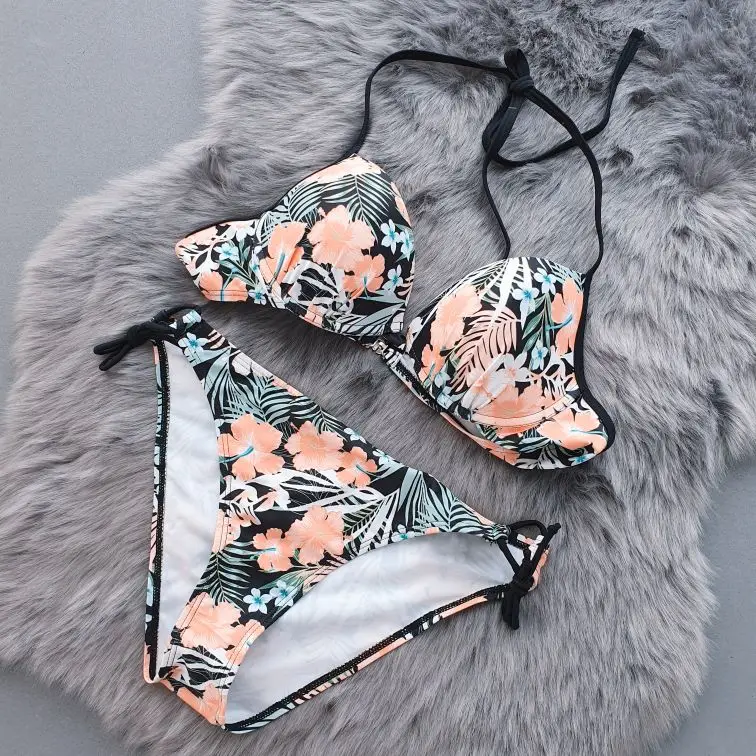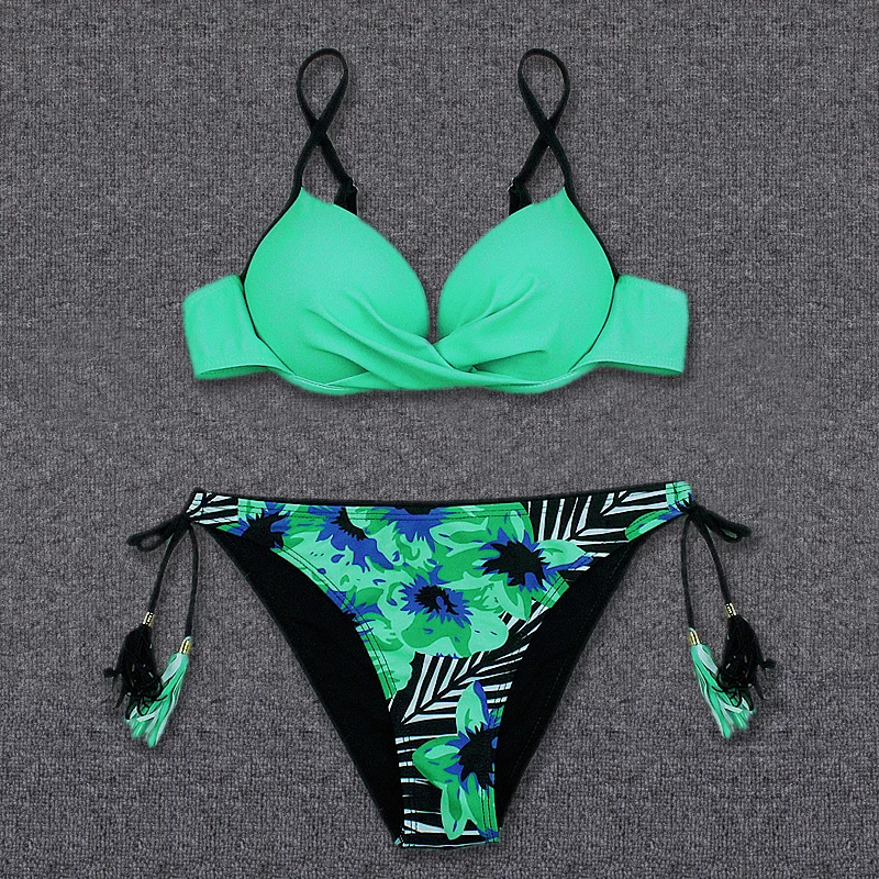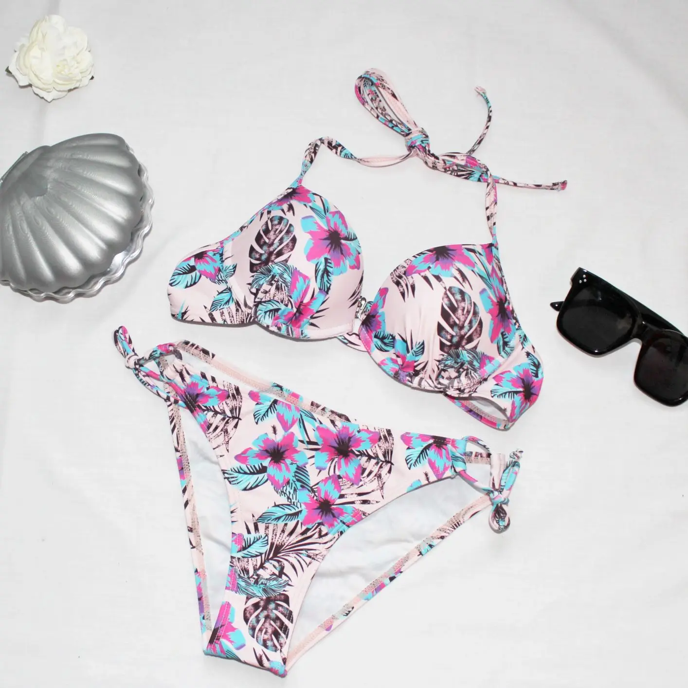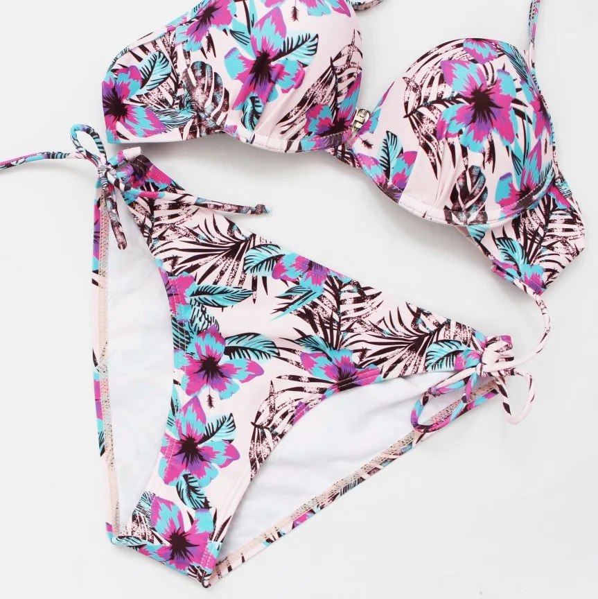 Сексуальное бикини с эффектом пуш-ап 2022, купальник с цветочным принтом, женский купальный костюм, комплект бикини, Бразильская пляжная Женская одежда, бикини XL