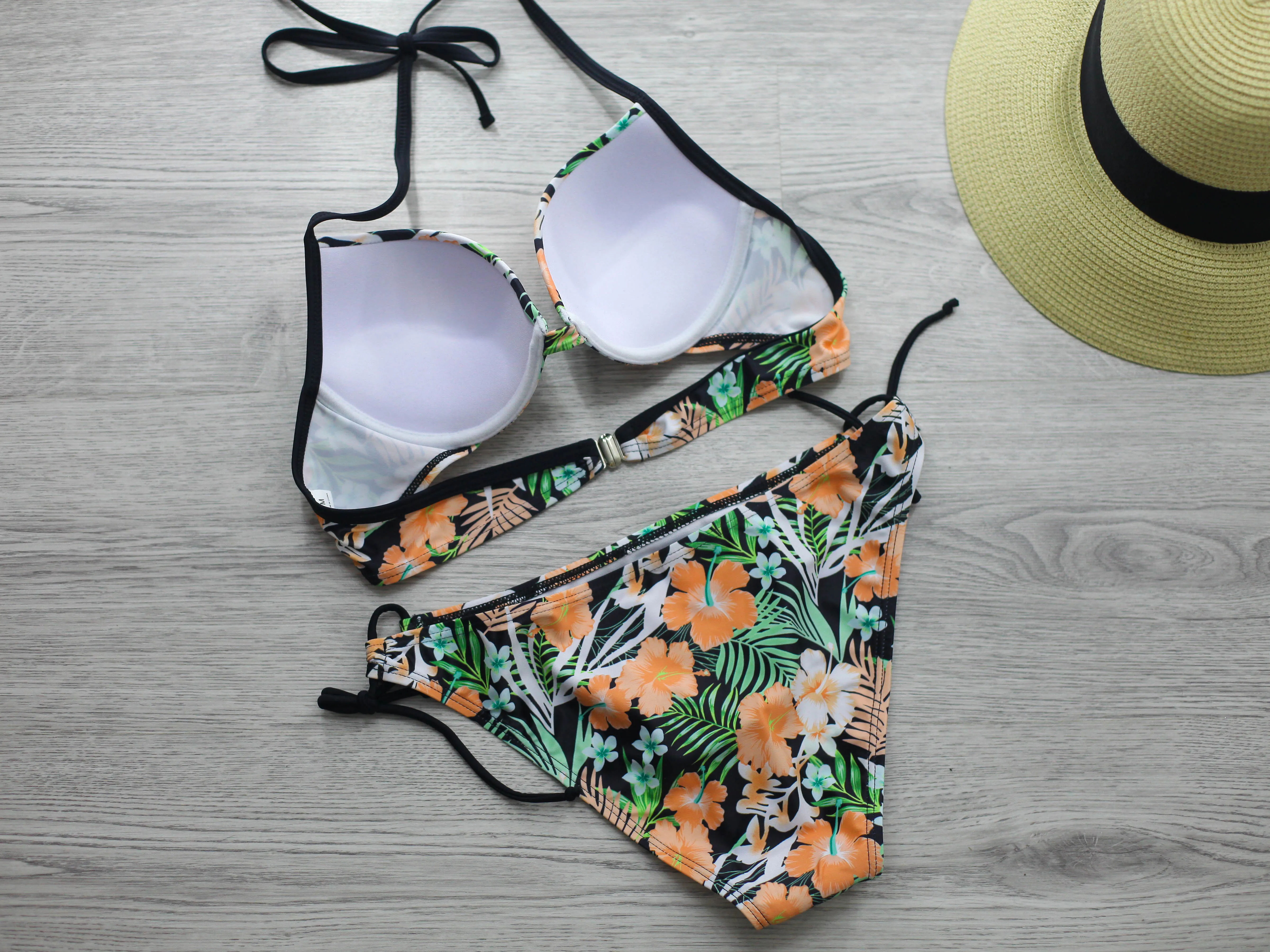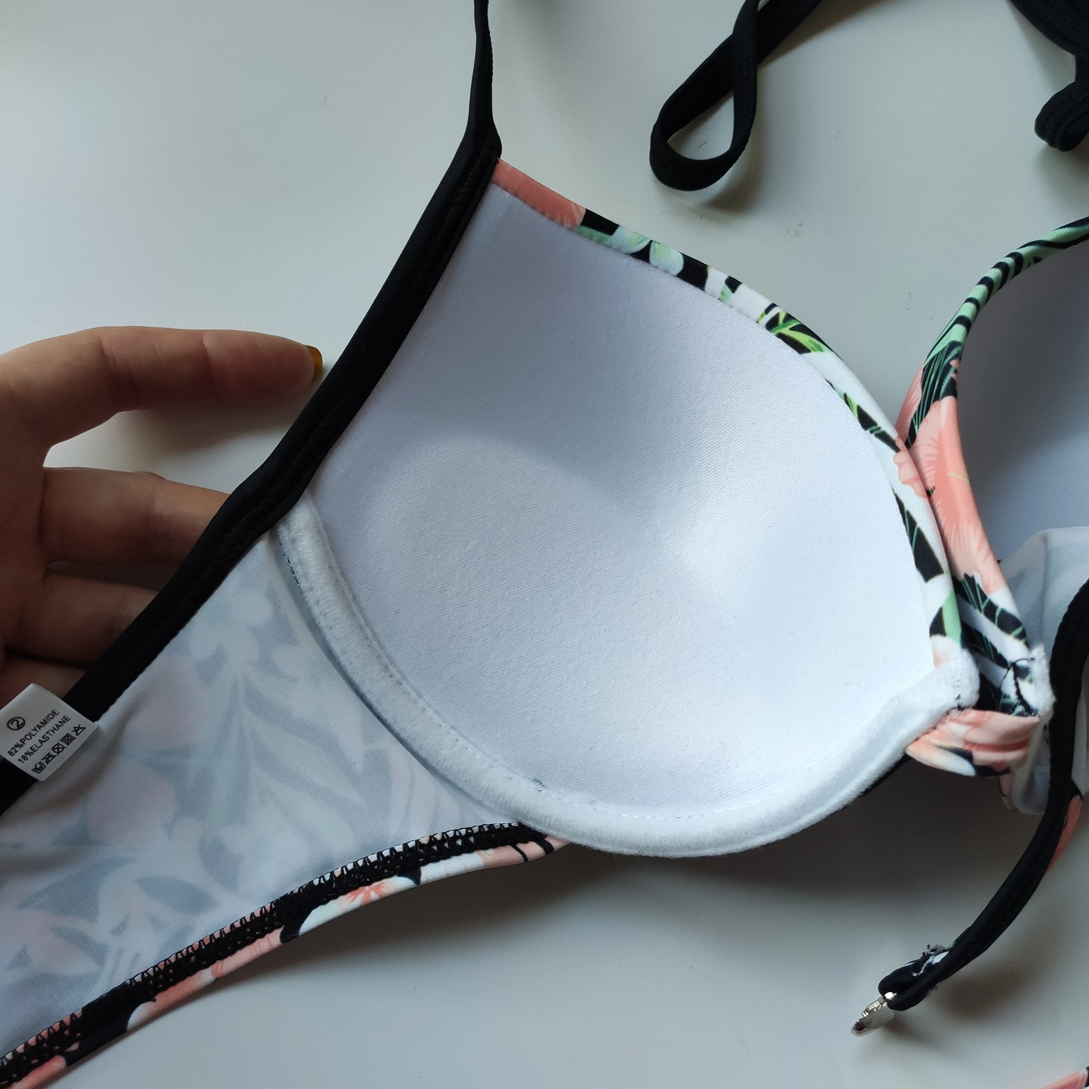 МОЙ ПРОФИЛЬ: https://a.aliexpress.com/_AbZ57k Бикини в классическом исполнении и нежным цветочным принтом в розовых оттенках. В Украину шло 2 недели. На параметры 80/63/80 и рост 150 см взяла S. Сел идеально везде, кроме объема груди (можно легко перешить лямки). Я бы для себя ещё добавила вместительность чашки, потому что она идёт на маленькую грудь (думаю, не больше первого). Материал - 82% полиамид, 18% эластан. Фурнитура - металл. Лиф имеет косточки. Пошив без изъянов. Взяла в розовом оттенке с цветочным принтом. Завязывается на шее и крепится за спинкой на крючки. Бретели не съёмные. Плавки регулируются сбоку шнурками. Лифчик поролоновый, с пуш-апом. Мне понравился.