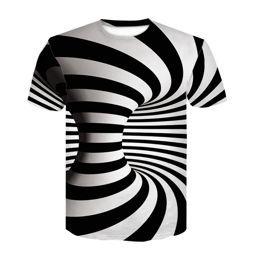 Новинка 2019, летняя модная гипнотическая футболка с короткими рукавами для мужчин, черно-белая полосатая футболка с 3D принтом