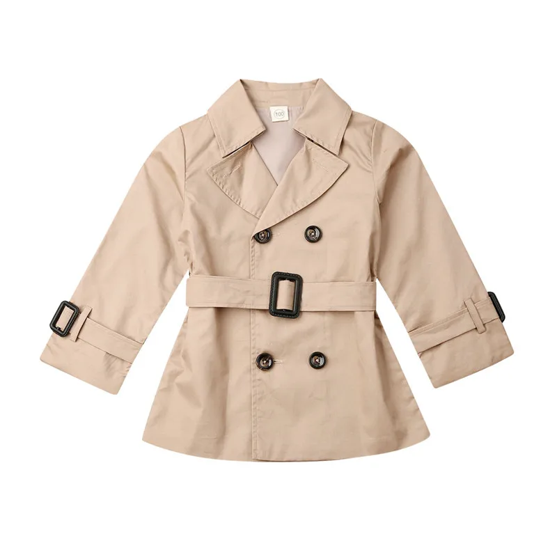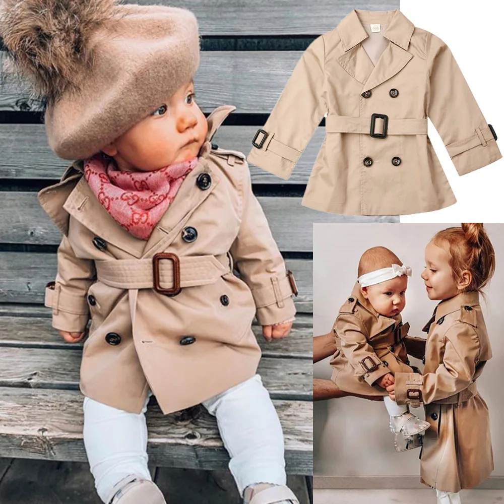 Детский двубортный тренч для девочек, зимний облегающий Тренч с поясом, с длинным рукавом, Тренч с лацканами