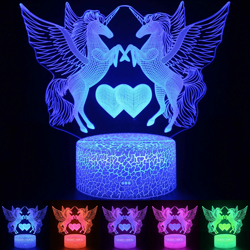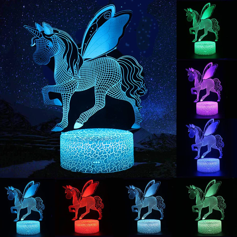 3D светодиодный светильник с дистанционным/сенсорным управлением, модная Светодиодная настольная лампа серии единорог, 7/16 цветов, украшение для дома, рождественский подарок для детей