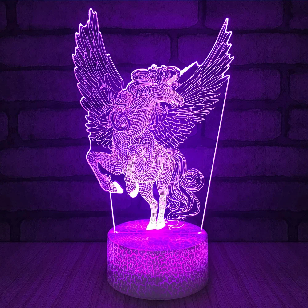 Светильник Единорог светодиодный ночник Pegasus 3D, носветильник светильники, декоративные светодиодные лампы, сенсорсветильник льник для детей, D30