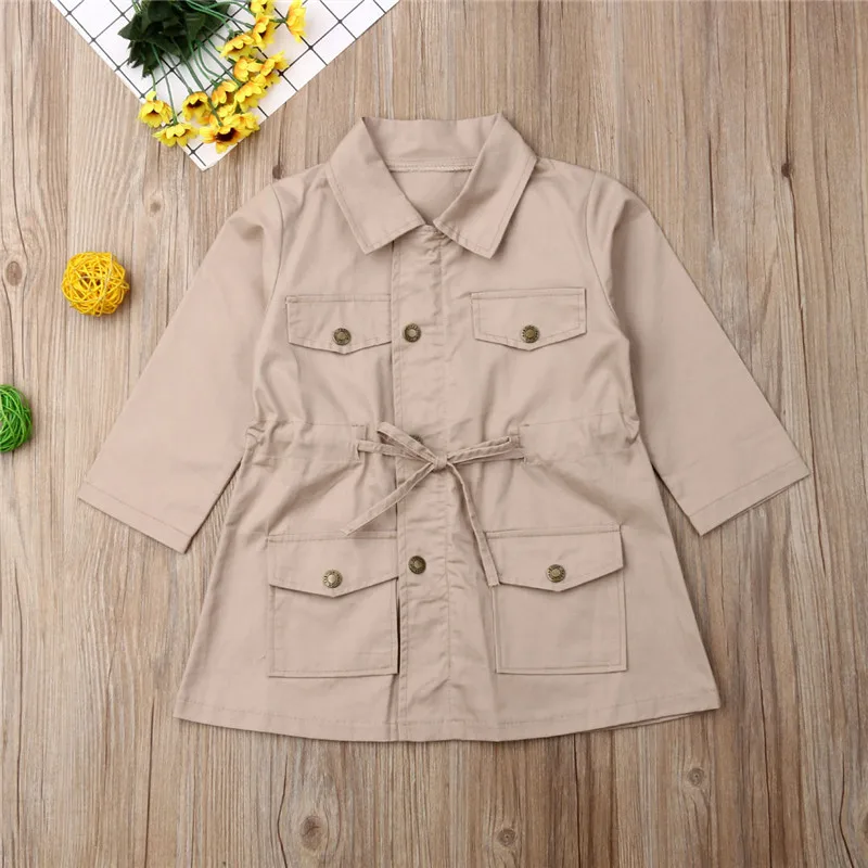 Горячая Распродажа, двубортный плащ для маленьких девочек, однотонн...