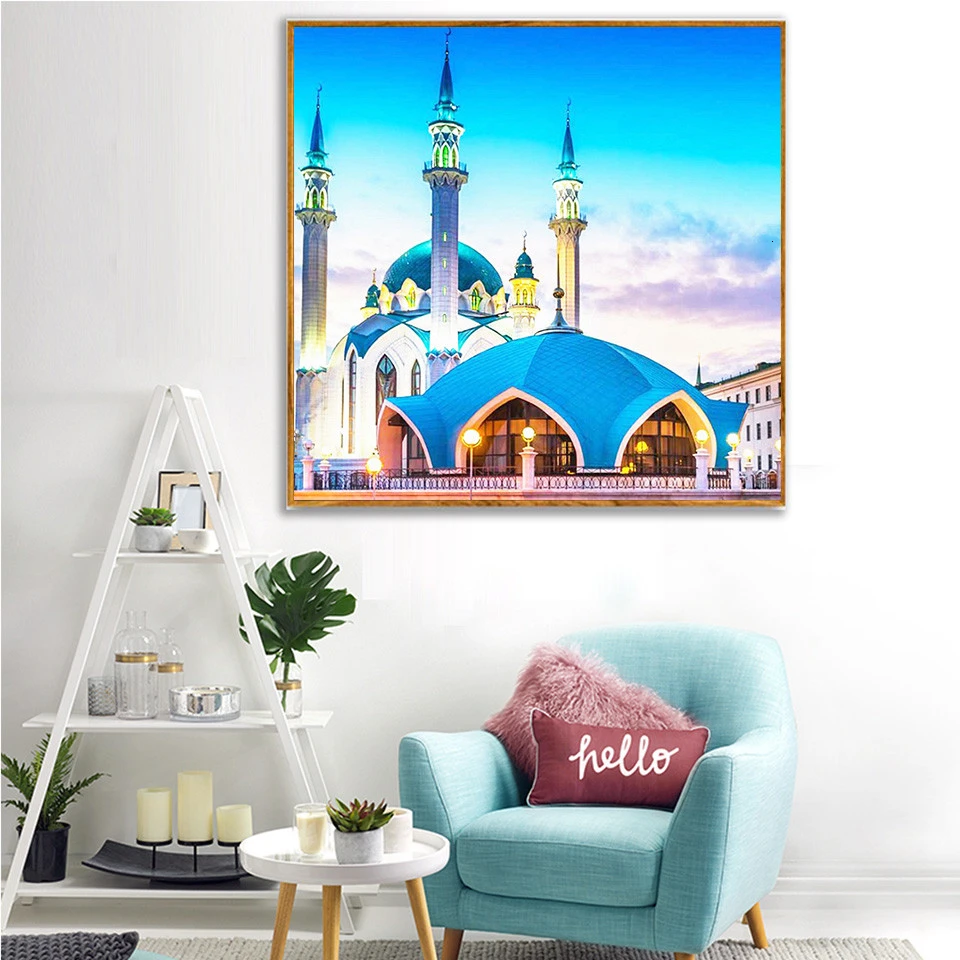 Алмазная живопись AZQSD, город Санторини, мозаика, Декор для дома, ...