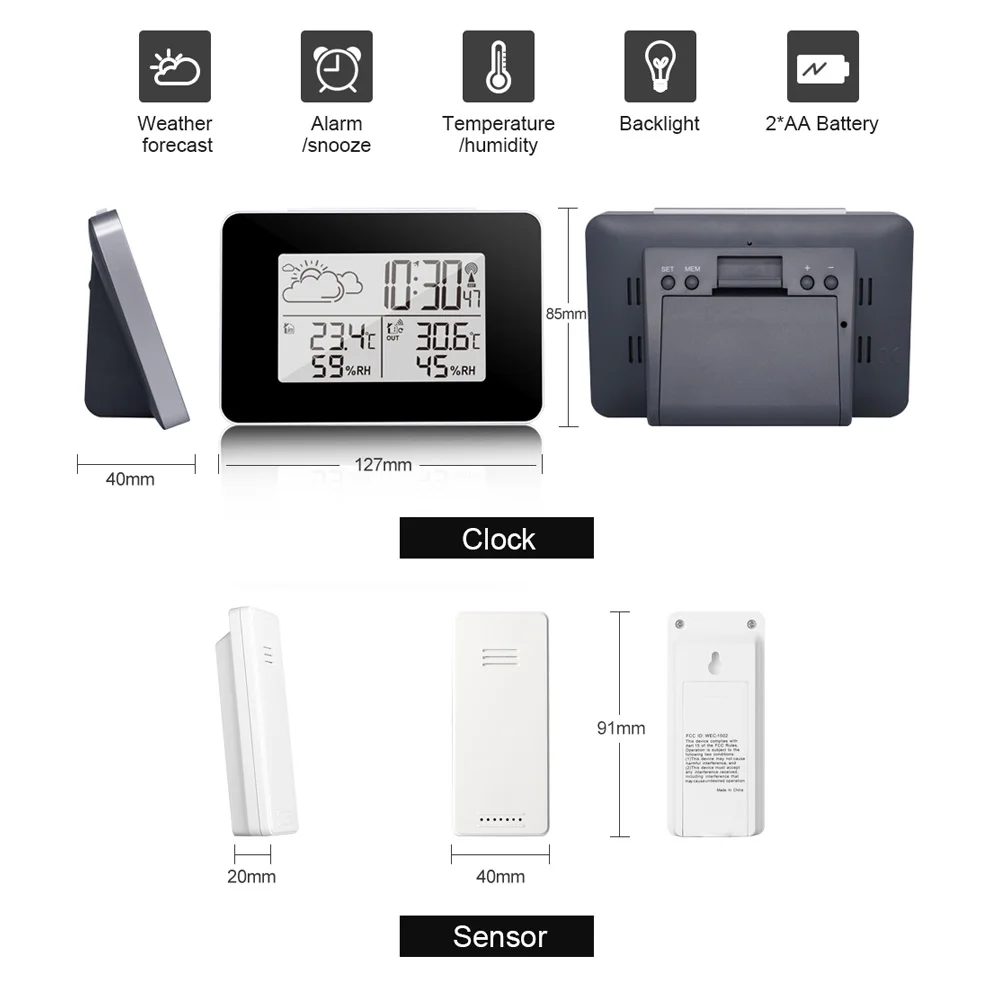 Будильник цифровые часы беспроводной датчик температуры и влажности...