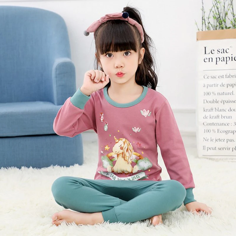 Детская Пижама для мальчиков и девочек пижама с единорогом Хлопковая пижама для малышей Пижама с рисунком детское нижнее белье Пижамный комплект на сезон: весна, осень и зима. Материал пижамы: хлопок 1 комплект пижамы = 1 Топ + 1 штаны