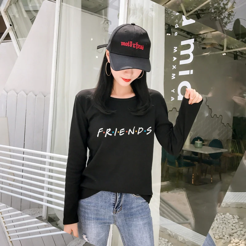 ZSIIBO Новая Осенняя футболка с длинными рукавами, повседневная с буквенным принтом в стиле Харадзюку, Повседневная Однотонная футболка для девочек