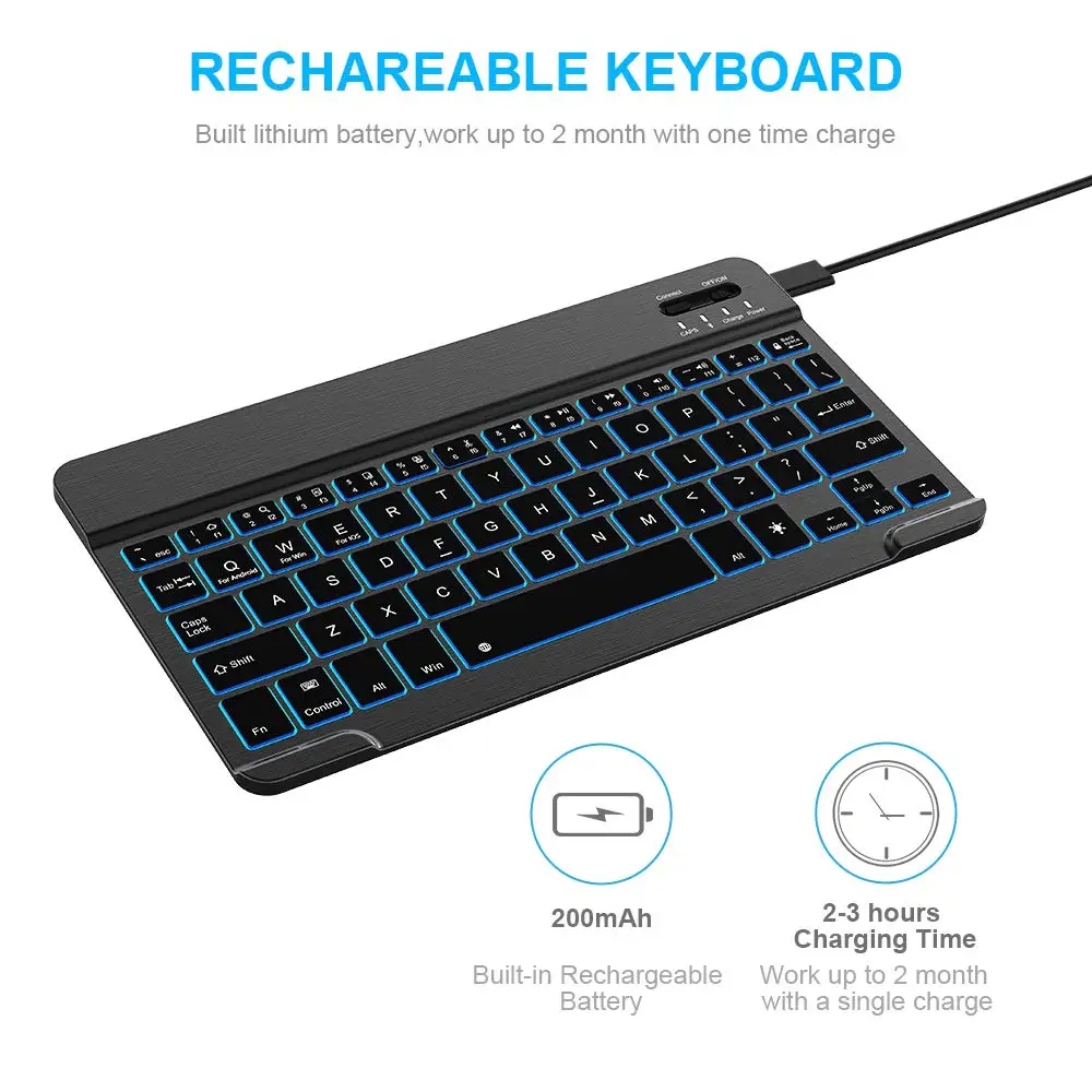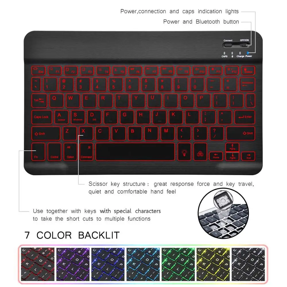 Ультратонкая Беспроводная Bluetooth-клавиатура с русской и испанской раскладкой и светодиодной подсветкой, 7 цветов, для iPad mini 7,9, клавиатура для Android и Windows