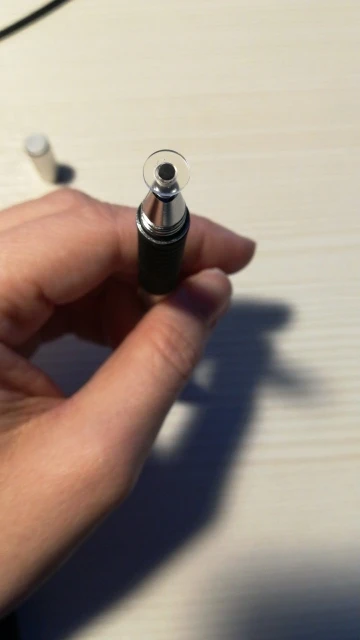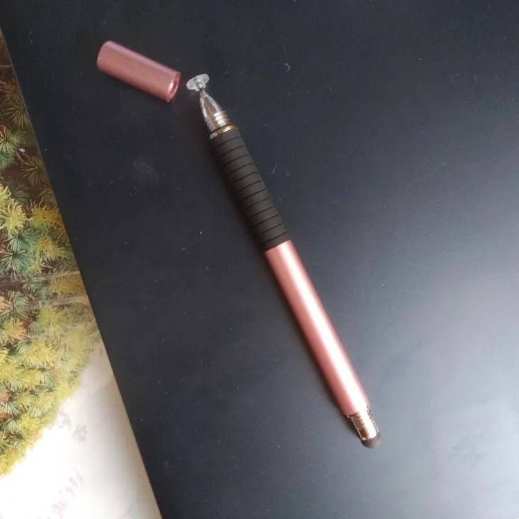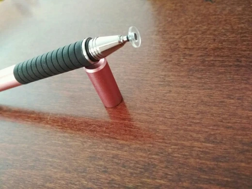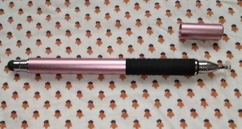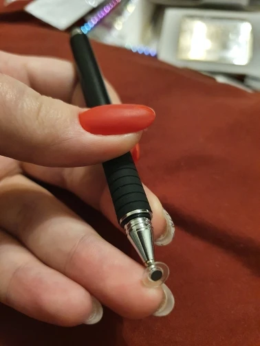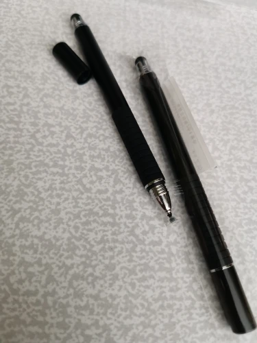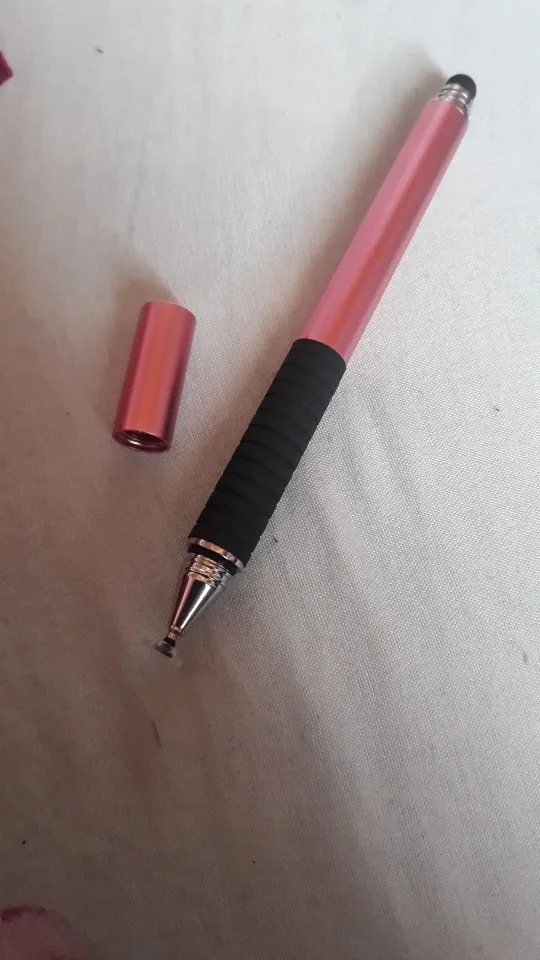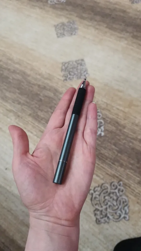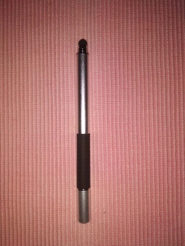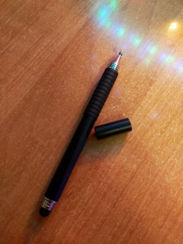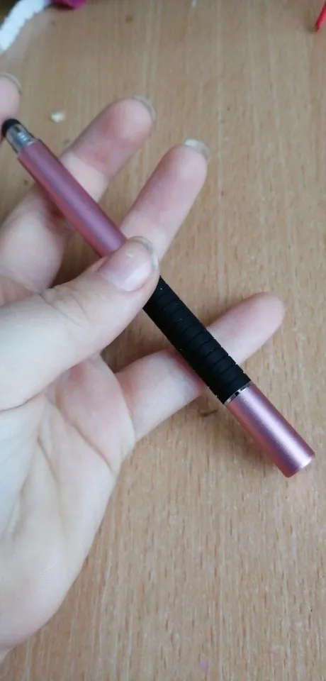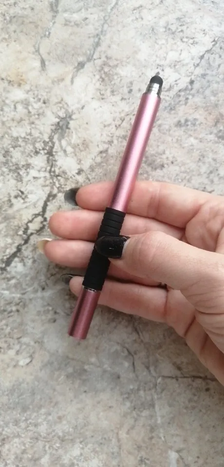 Я считаю, это отличный стилус. Пришёл относительно быстро (для моего "города"), заказывала розовый, рядом на фотке пример из другого магазина, если честно, пока оба наконечника этого стилуса работают лучше. Он приятный на ощупь, слегка шершавый и блестящий на свету корпус, что так же приятно, круглый наконечник не скрипит по телефону (скорее всего это зависит от материала). Тяжеловатый (свойственно для всех стилусов такого вида) и внутри полый. Вдруг кому интересно, отличаются черный и розовый(серый так же) тем что: черный наконечник длиннее и перед концом с диском ручка более толстая и овальная (у черного ровная, напоминающая треугольник) надеюсь отзыв помог кому-нибудь определиться^^