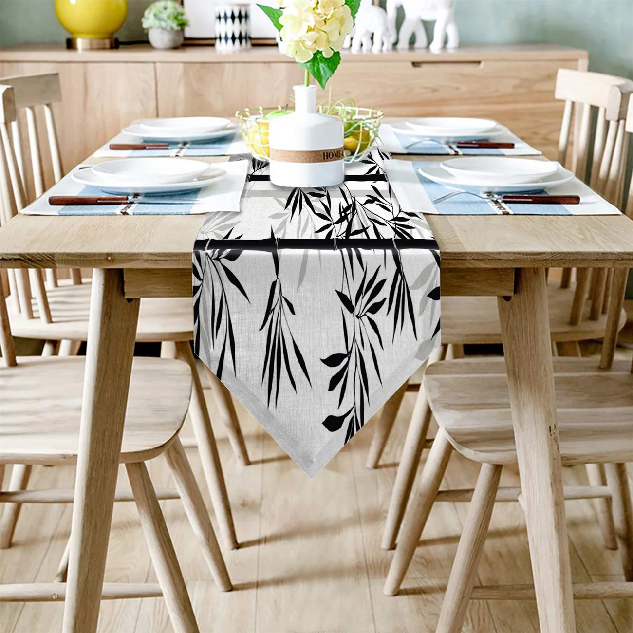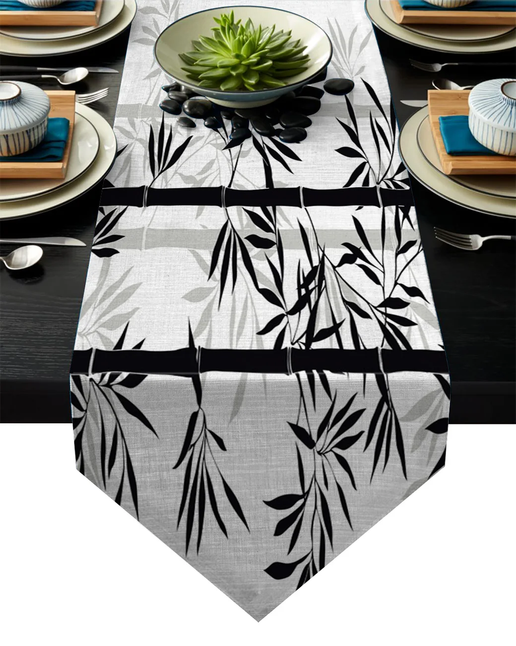 Современный Настольный бегун черный белый бамбук китайский стиль чернильный лист растительный настольный бегун s для свадебной вечеринки домашний обеденный стол Крышка