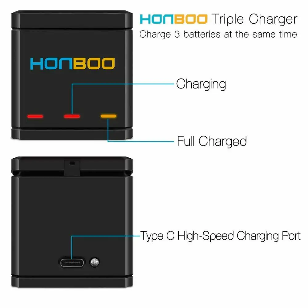 Аккумулятор и тройное зарядное устройство для камеры GoPro Hero 7 hero 6 hero 5 black