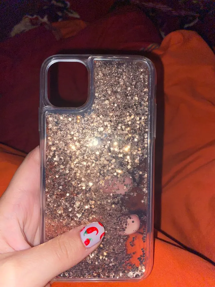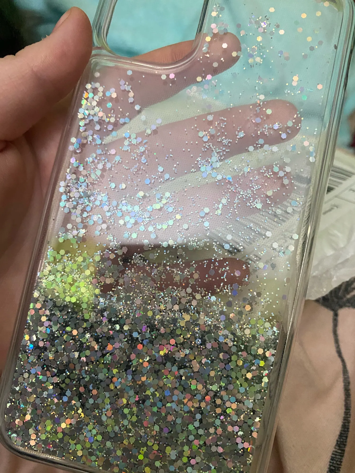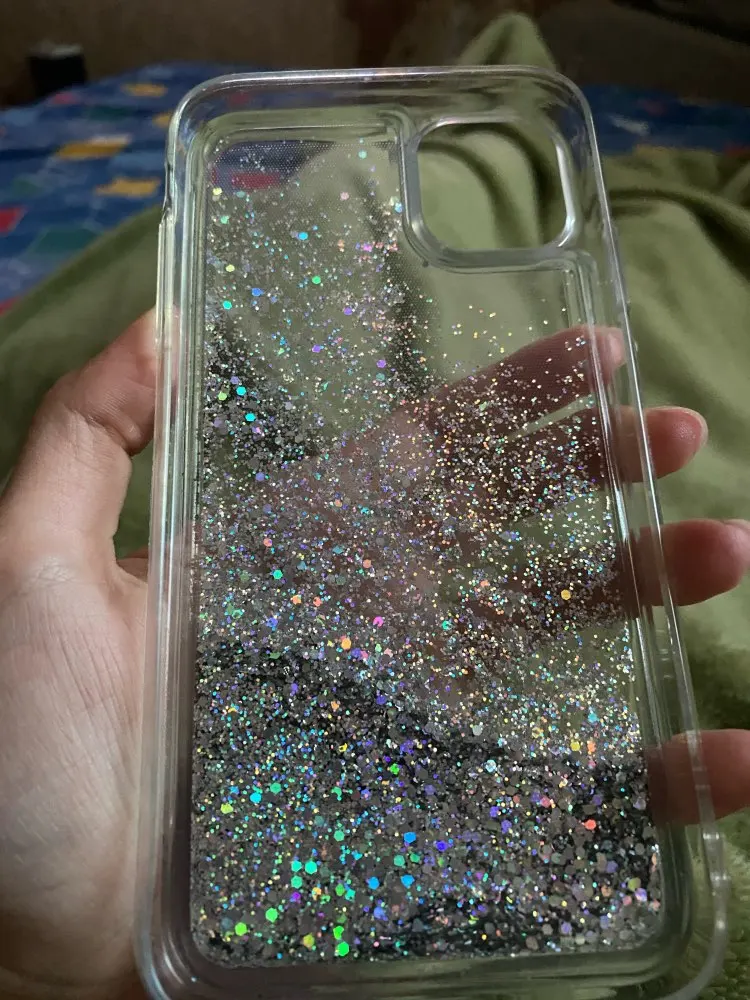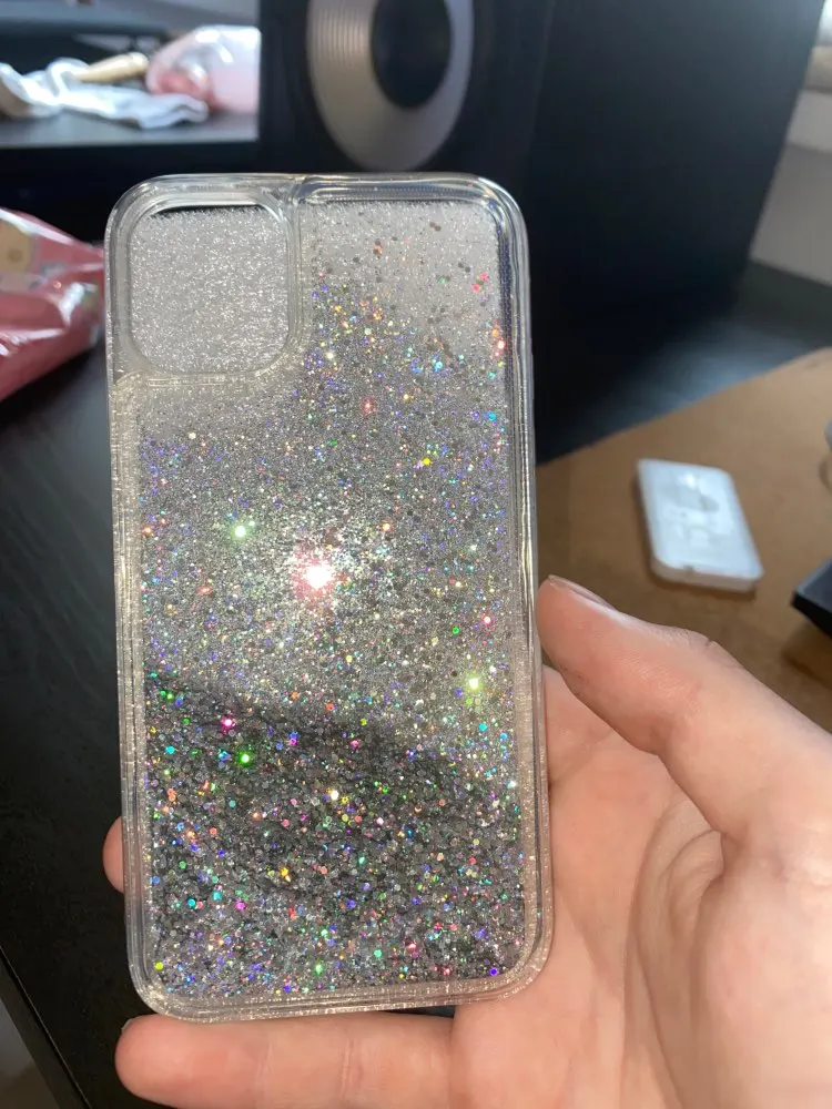 Хороший чехол для повседневной носки. Смотрится круто на зелёном 11айфоне. Из замечаний 1. Немного не аккуратно обработаны стыки. 2. В серебристых блестках попадаются красные. 3. Бортики плохо закрывают экран(телефон экраном вниз не положишь на стол). Доставка в Украину заняла 2.5 недели.