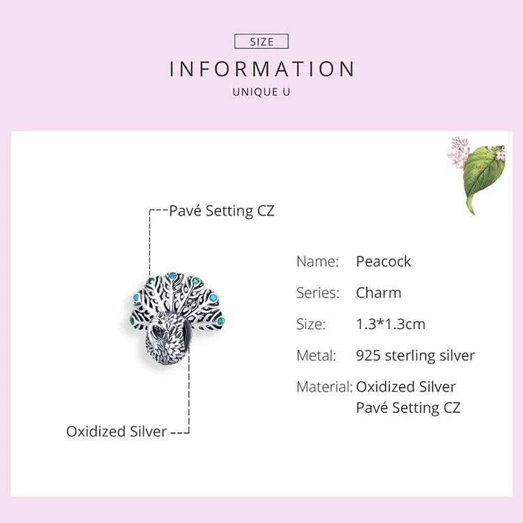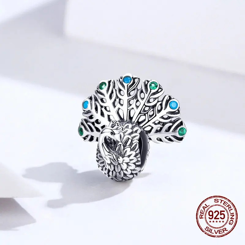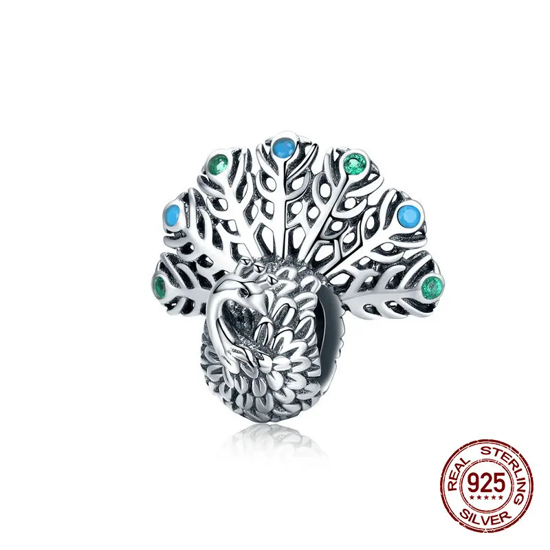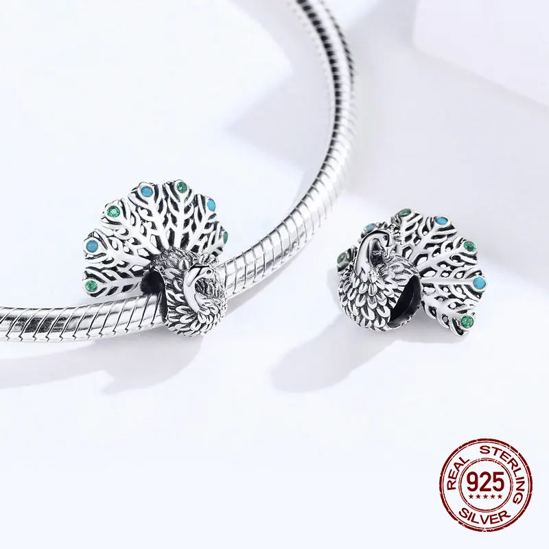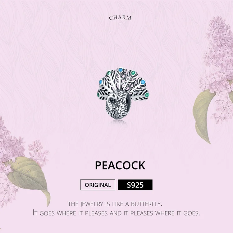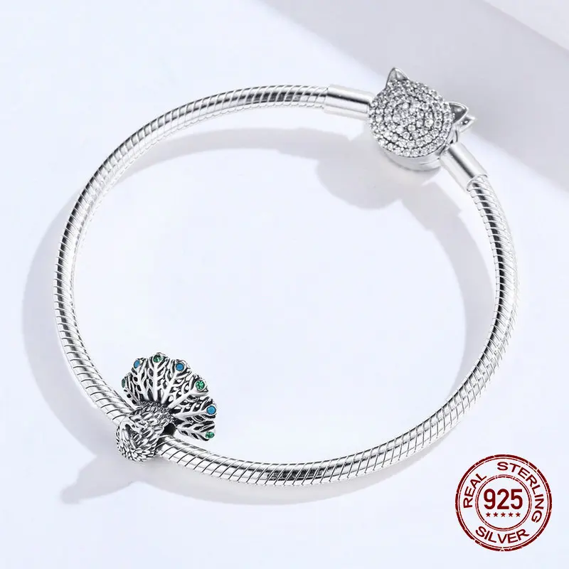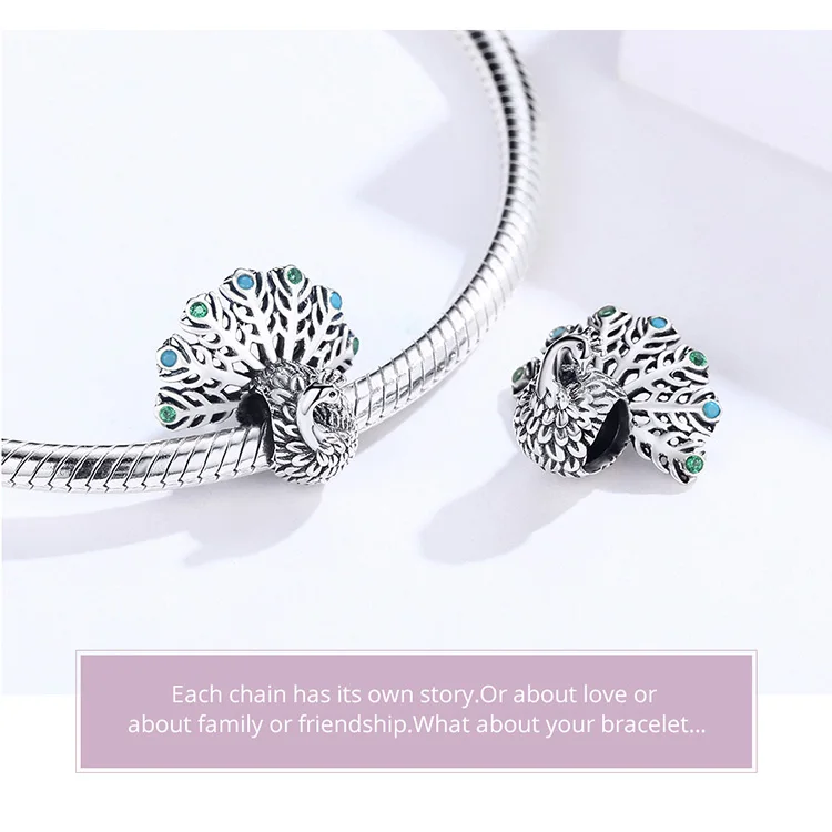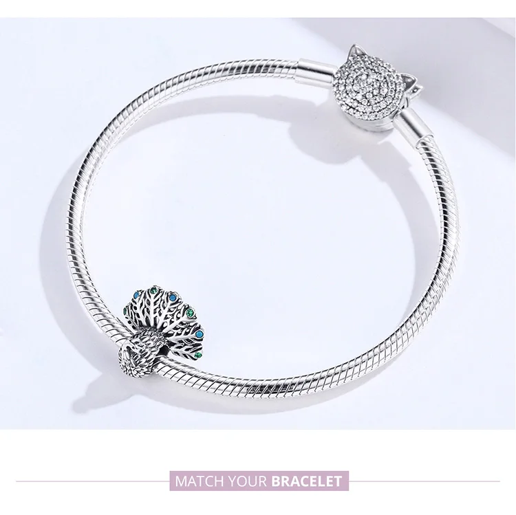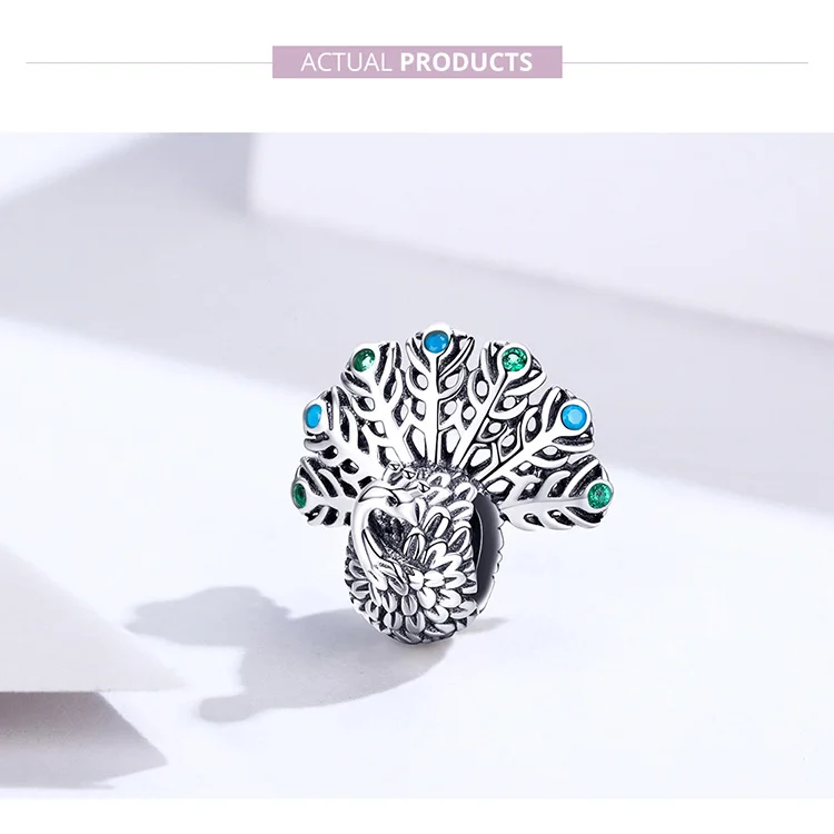 Bamoer изящный металлический браслет с павлиньими бусинами 3D, роск...