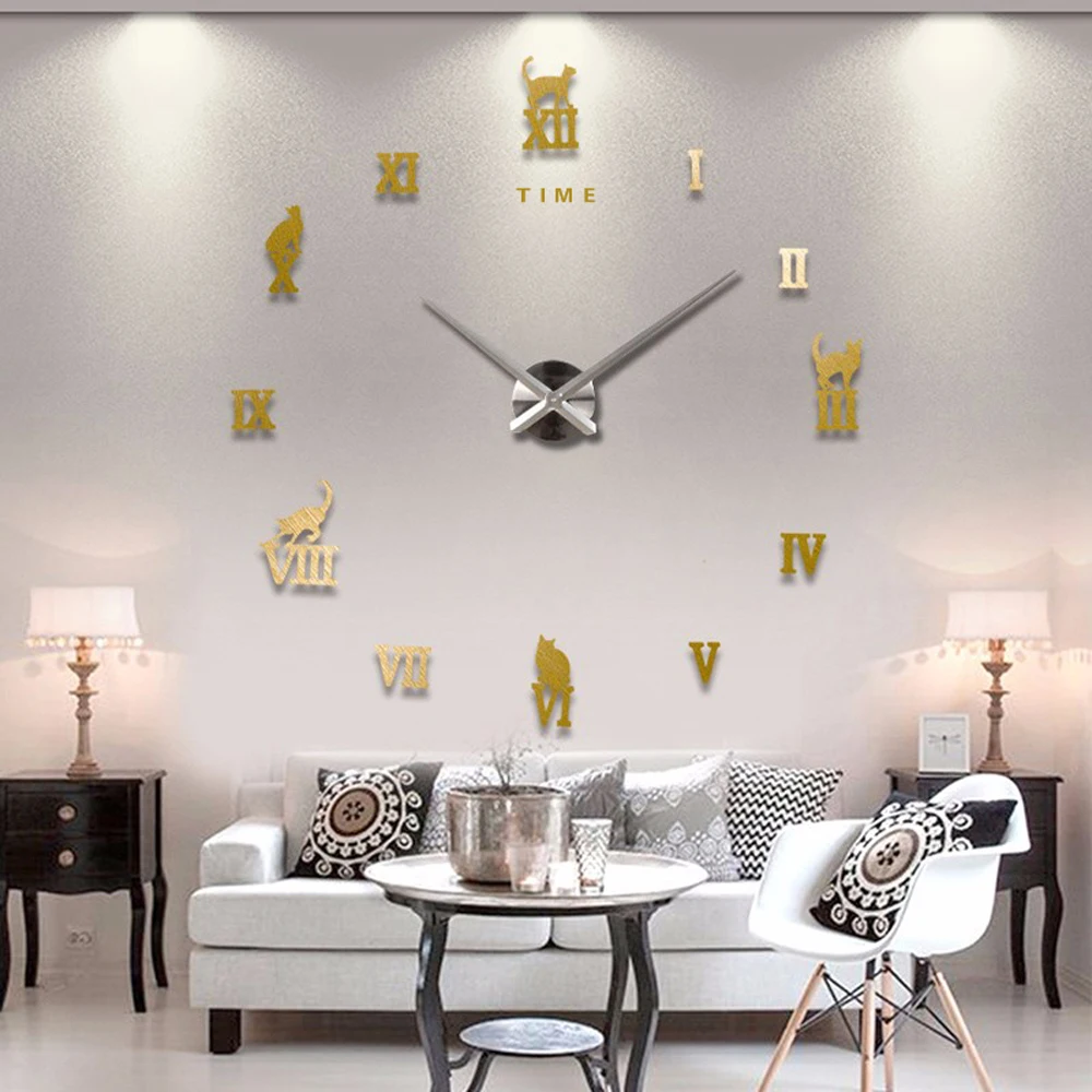 Большие настенные часы с кошкой, бесшумные 3D, сделай сам, кухонные...