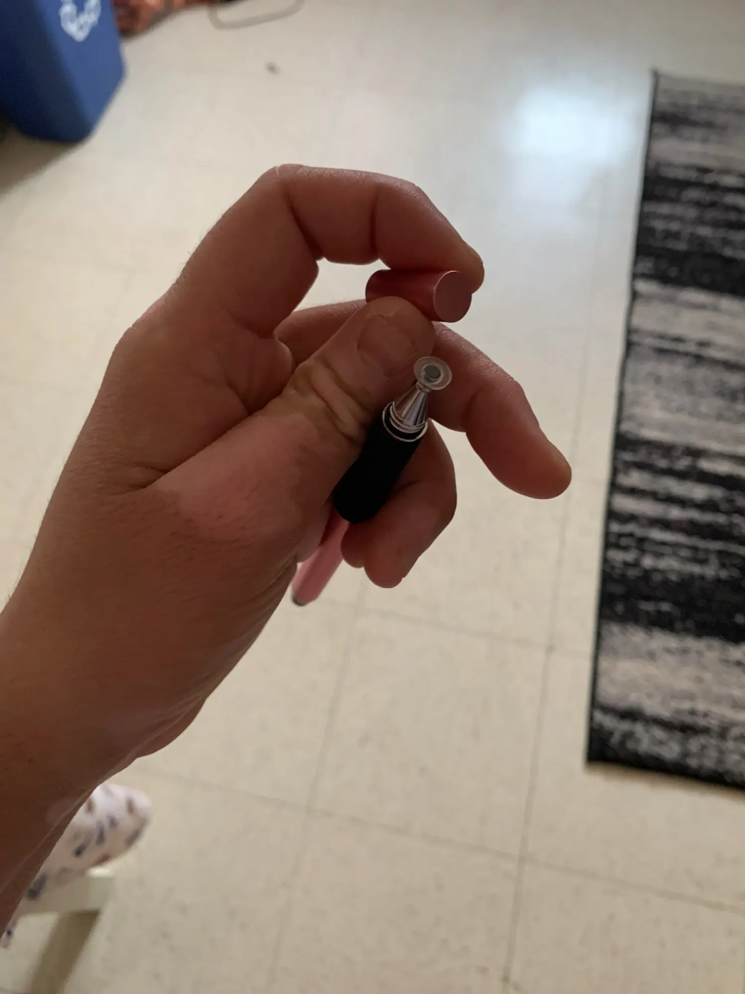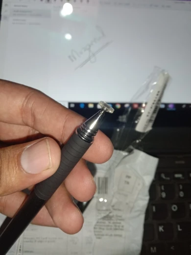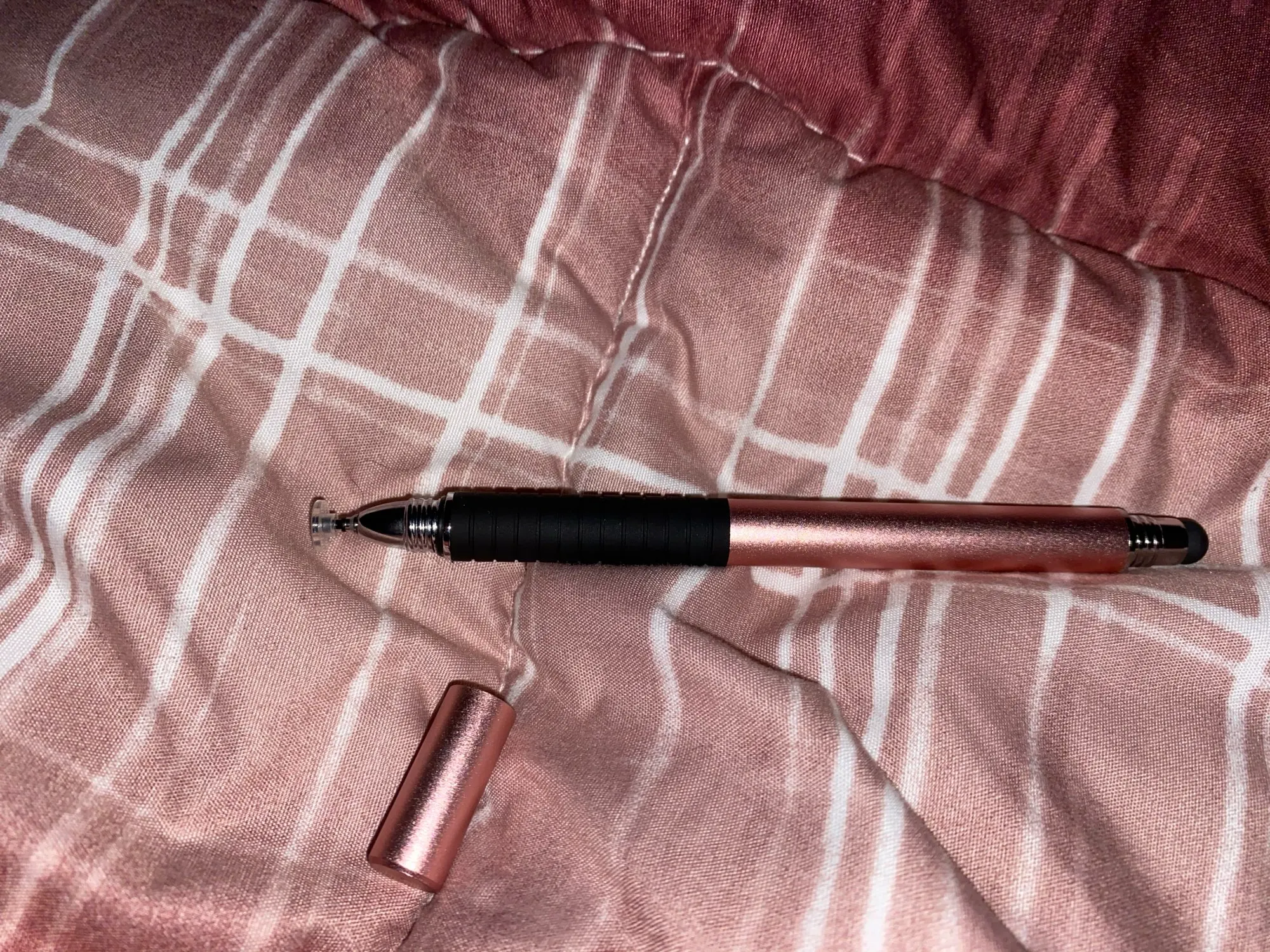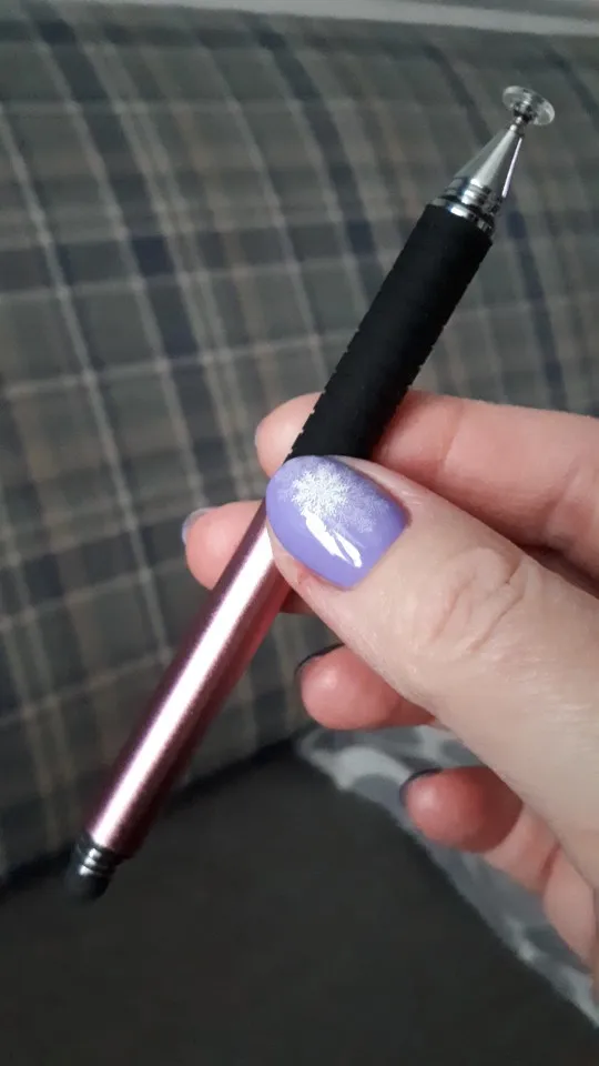 Очень хорошая вещь. доставка 15 дней. Стилус выглядит дорогим, работают оба конца, тоненьким очень удобно рисовать - этот ограничитель не даёт выйти за края. Дочь прямо пищит от счастья. Рекомендую 100℅ и продавца, и товар. Есть навинчивающийся колпачок на тонком конце, когда рисуешь, то можно накрутить и на толстую сторону, там тоже резьба имеется. На фото мой стилус, а у дочери этот розовый, не даёт сфотографировать, из рук не выпускает. Они идентичны и качеством и работоспособностью.