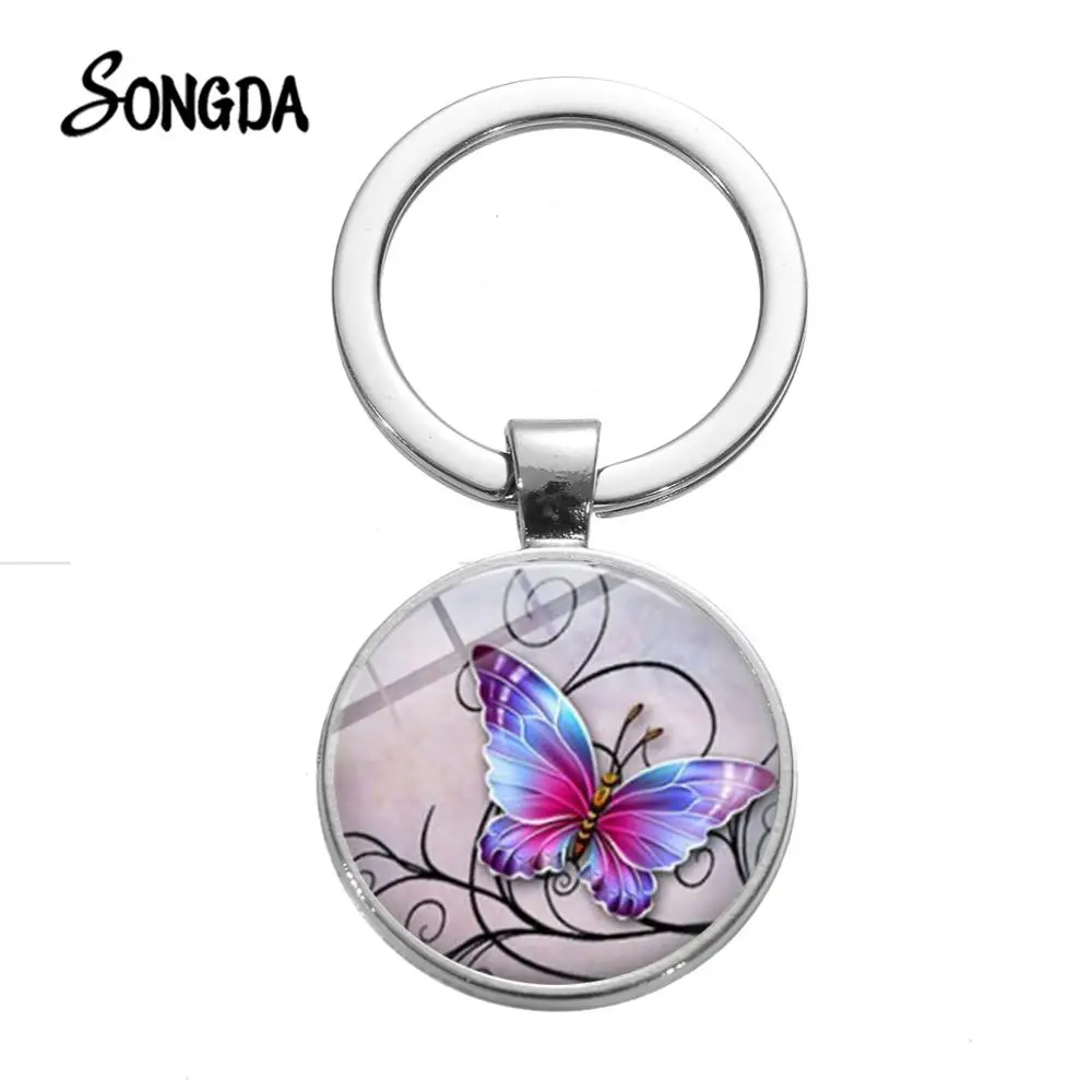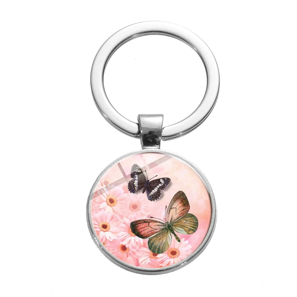 Романтический фиолетовый брелок в виде бабочки, пара бабочек, винтажный цветок, художественная картина, стеклянный брелок для ключей, подвески для женщин и девочек на сумку