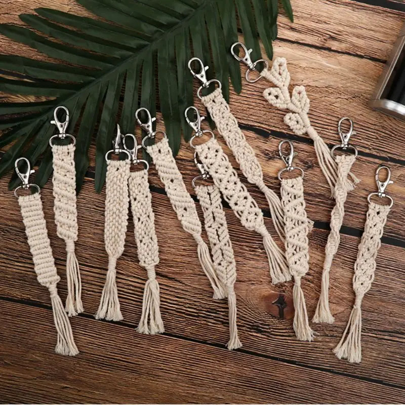 Брелок для ключей для женщин, в стиле бохо, макраме, на сумку, подвесное украшение для автомобиля, подарок для друзей, брелоки с кисточками