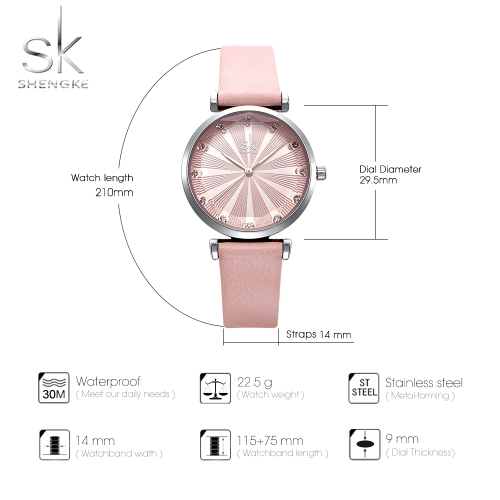 Женские часы Shengke, роскошные женские часы с кожаным ремешком, ча...