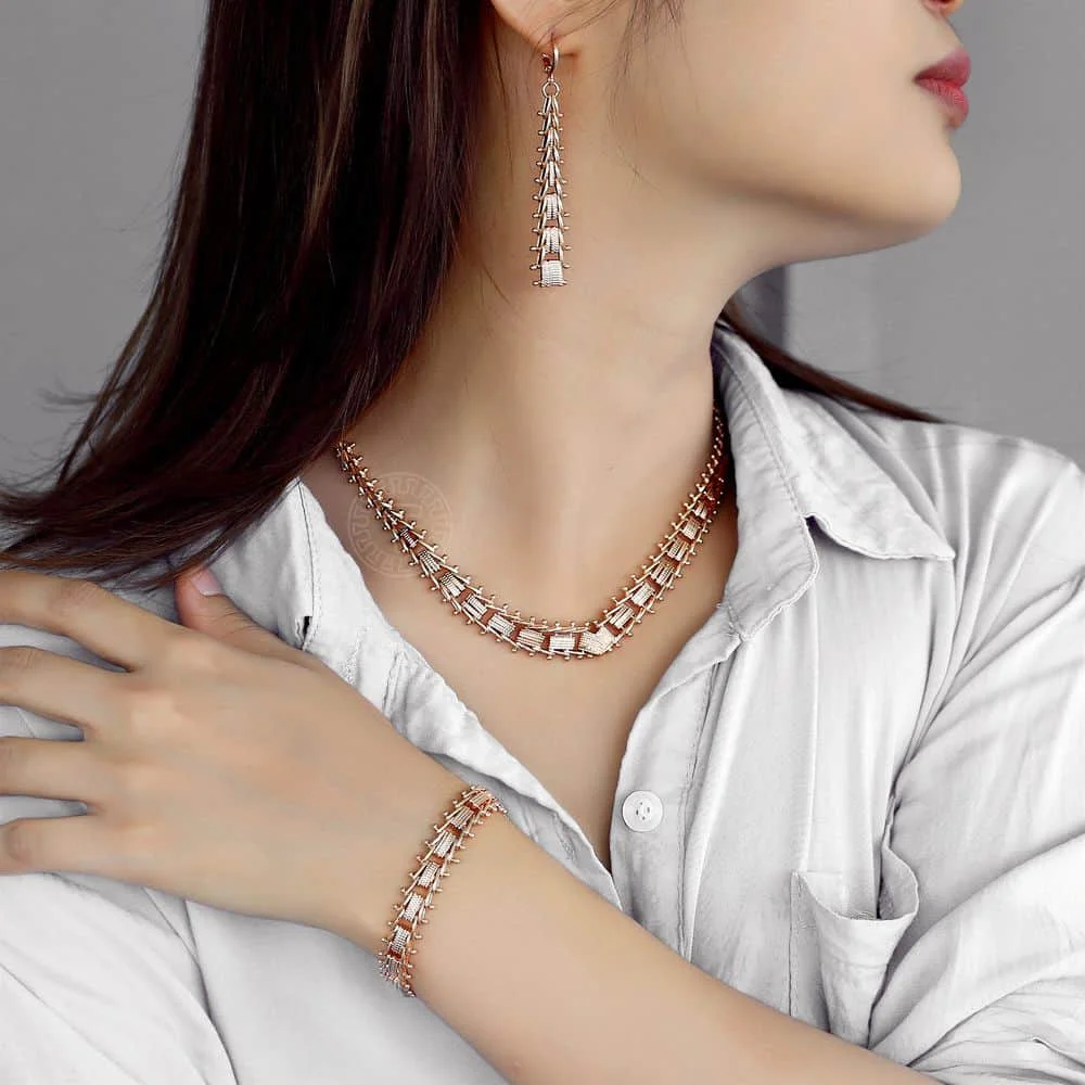 Ювелирный набор , 585, розовое золото , для женщин, девушек, ожерелье , браслет , серьги , Геометрическая цепочка , цепочка , свадебное ювелирное изделие, CS12