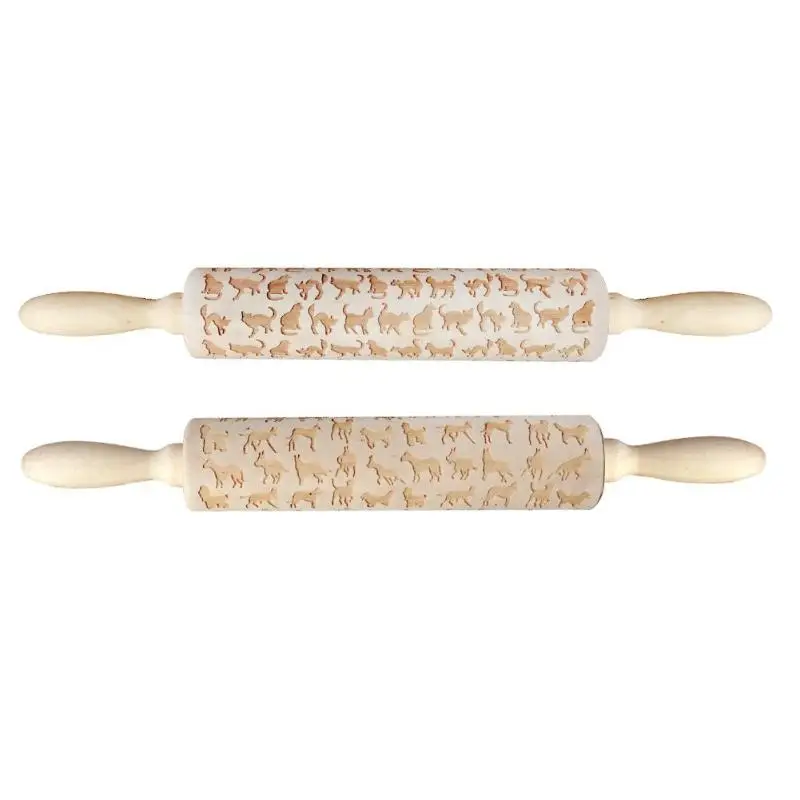 Скалка с тиснением по дереву в виде милых животных для сделай сам для выпечки печенья, печенье лапши, фондан, пирог, ролик с гравировкой, Прямая поставка
