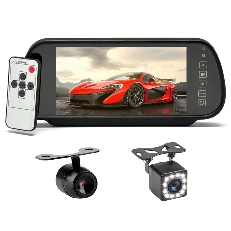7 дюймовый TFT LCD широкоформатная сенсорная кнопка автомобильное зеркало монитор парктроник 2 AV вход камера заднего вида опционно