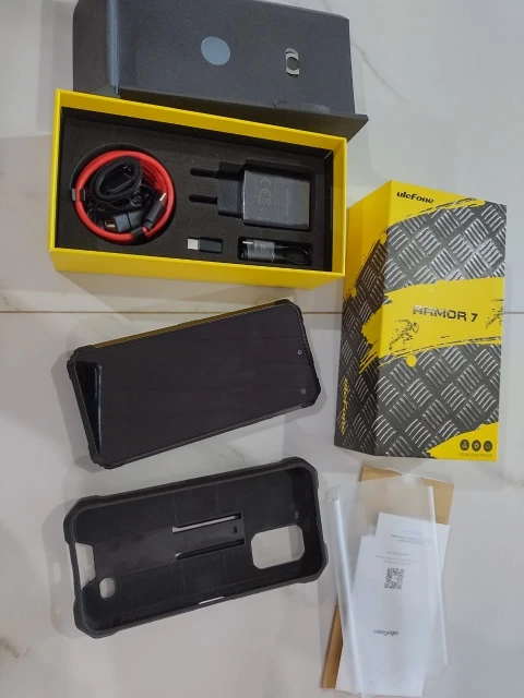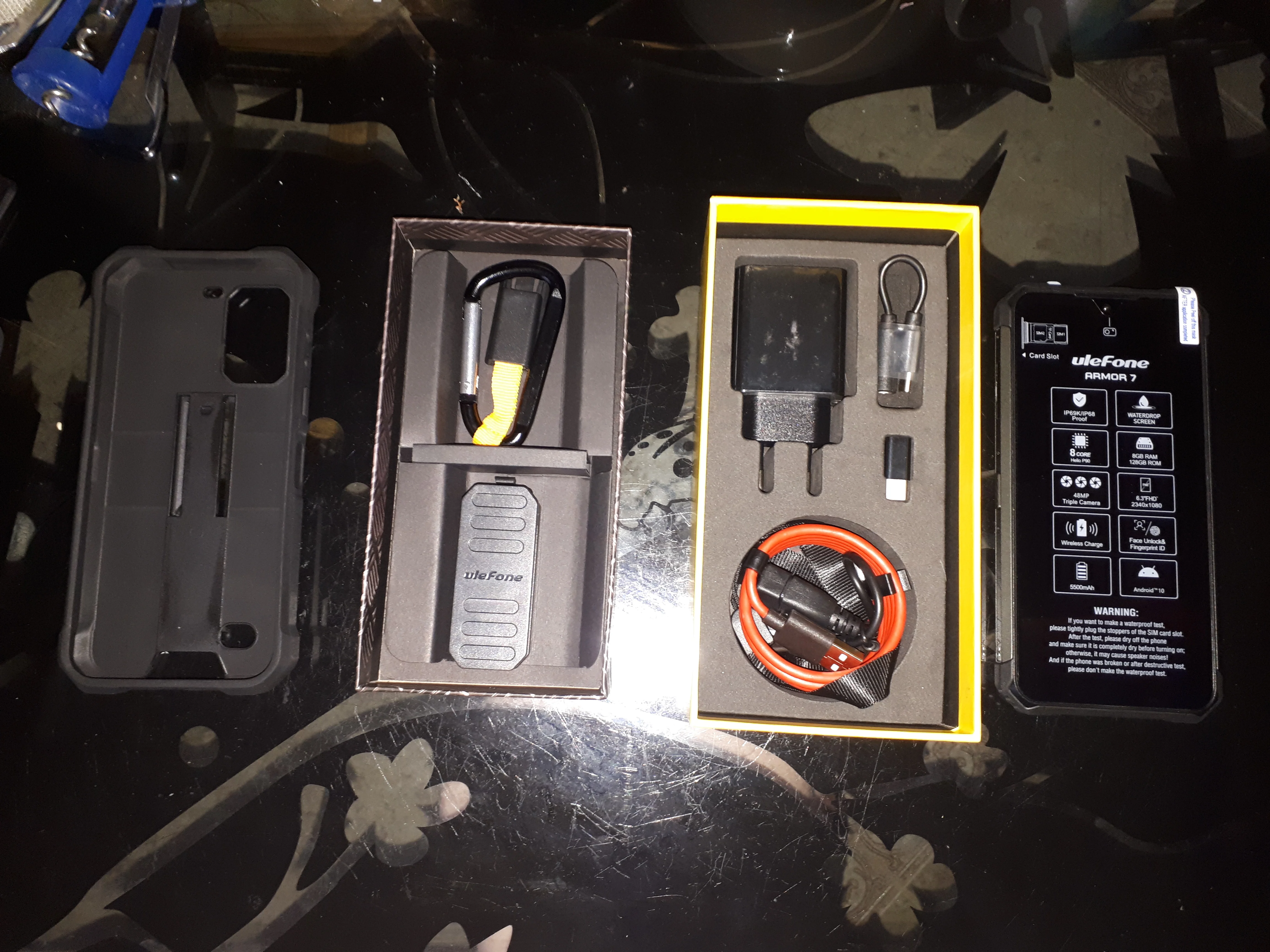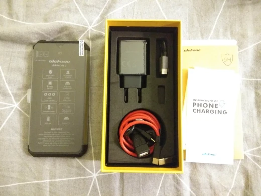 Ехал почти целый месяц, долговато. Но не критично В комплекте кроме зарядки был переходник typeC-3.5 jack и typeC-USB (F). Второй провод - отличная штука, можно воткнуть флешку жёсткий диск (при наличии переходника на USB) или даже какую-нибудь компьютерную периферию. Обещанное защитное стекло тоже в комлекте было, мелочь, а приятно. Из недостатков пока только: Бока не обрезиненные. Телефон хоть и легче большинства бронефонов, всё равно тяжеловат. Хотя об этом написал почти каждый Отсутствие базовых программ типа галереи и музыки, но вшитые инструменты типа шумомера или отвеса. В заблокированном состоянии не очень адекватно реагирует на программируемую кнопку. Поставил на неё фонарик. Если телефон заблокирован, с первого раза вряд ли включится, выключить не получалось вообще. Но если нажать на кнопку включения, чтобы экран подсветился, всё работает без нареканий Пользуюсь неделю, серьёзных недостатков пока не заметил, дополню по необходимости