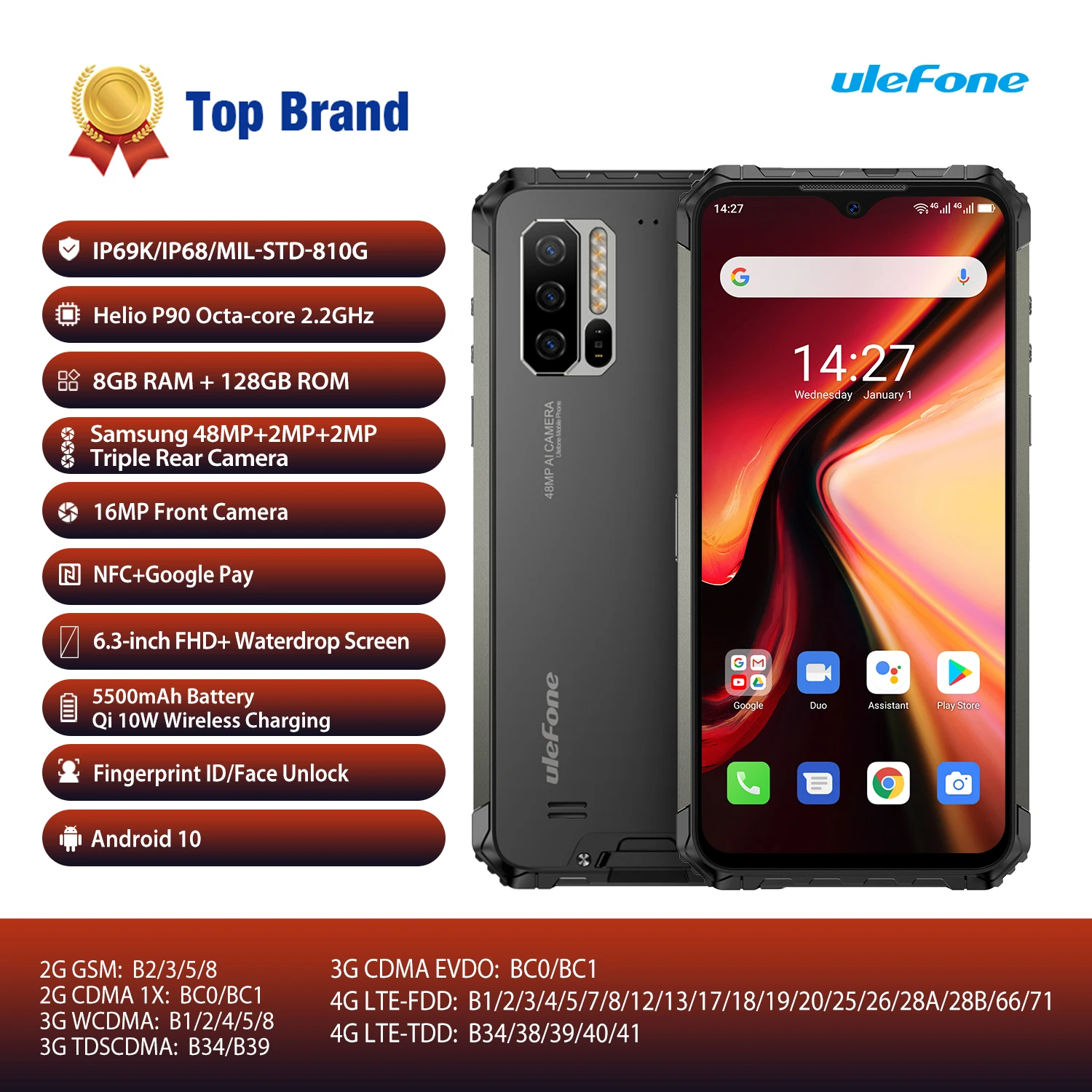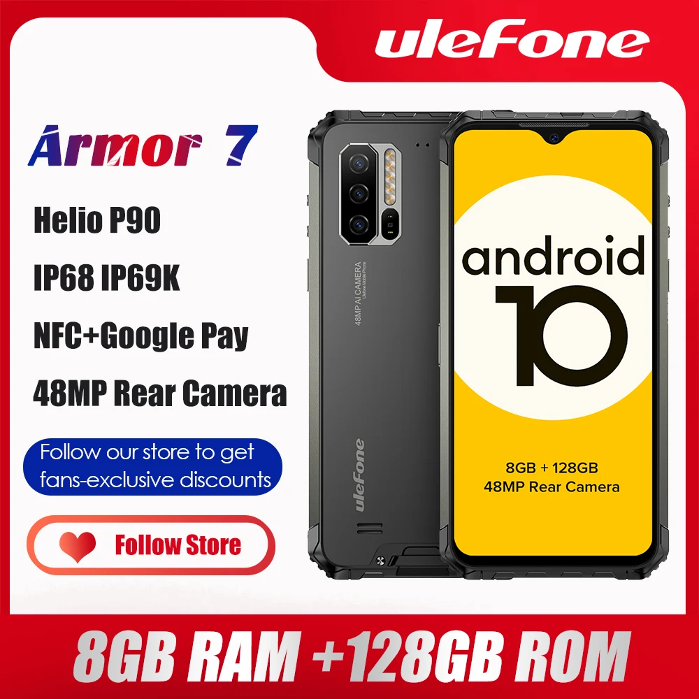 Ulefone Armor 7 прочный мобильный телефон Android 10 2,4G5G Wi-Fi 8 ГБ + 128 ГБ Helio P90 IP68 48MP CAM 4 аппарат не привязан к оператору сотовой связи глобальная версия смартфона