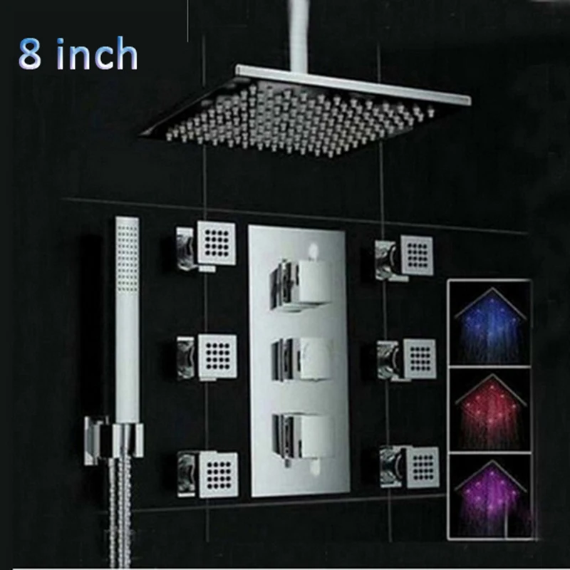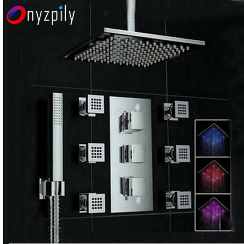 Onyzpilly квадратный светодиодный смеситель для душа, настенный смеситель для душа + насадка для душа + массажный распылитель для душа