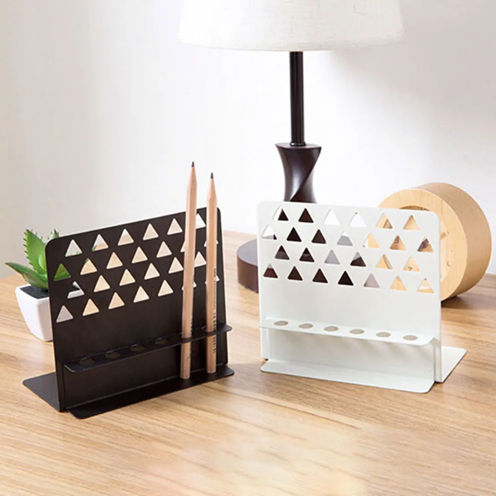 Пустотелый треугольный Железный книжный конец с настольная подставка для ручек стеллаж для хранения книг