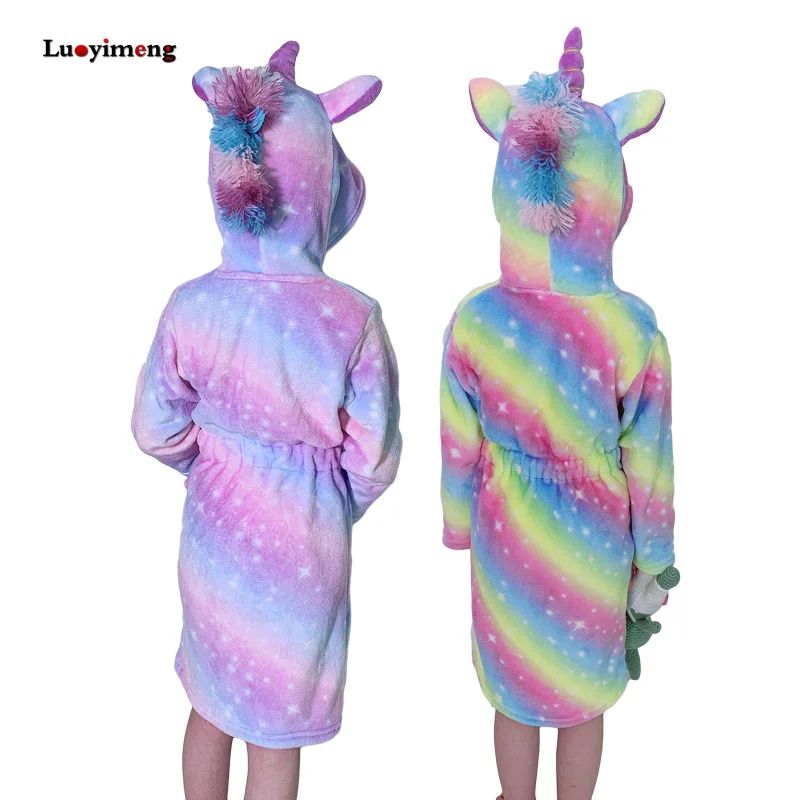 Зимние халаты для девочек, фланелевые банные халаты с единорогом, н...