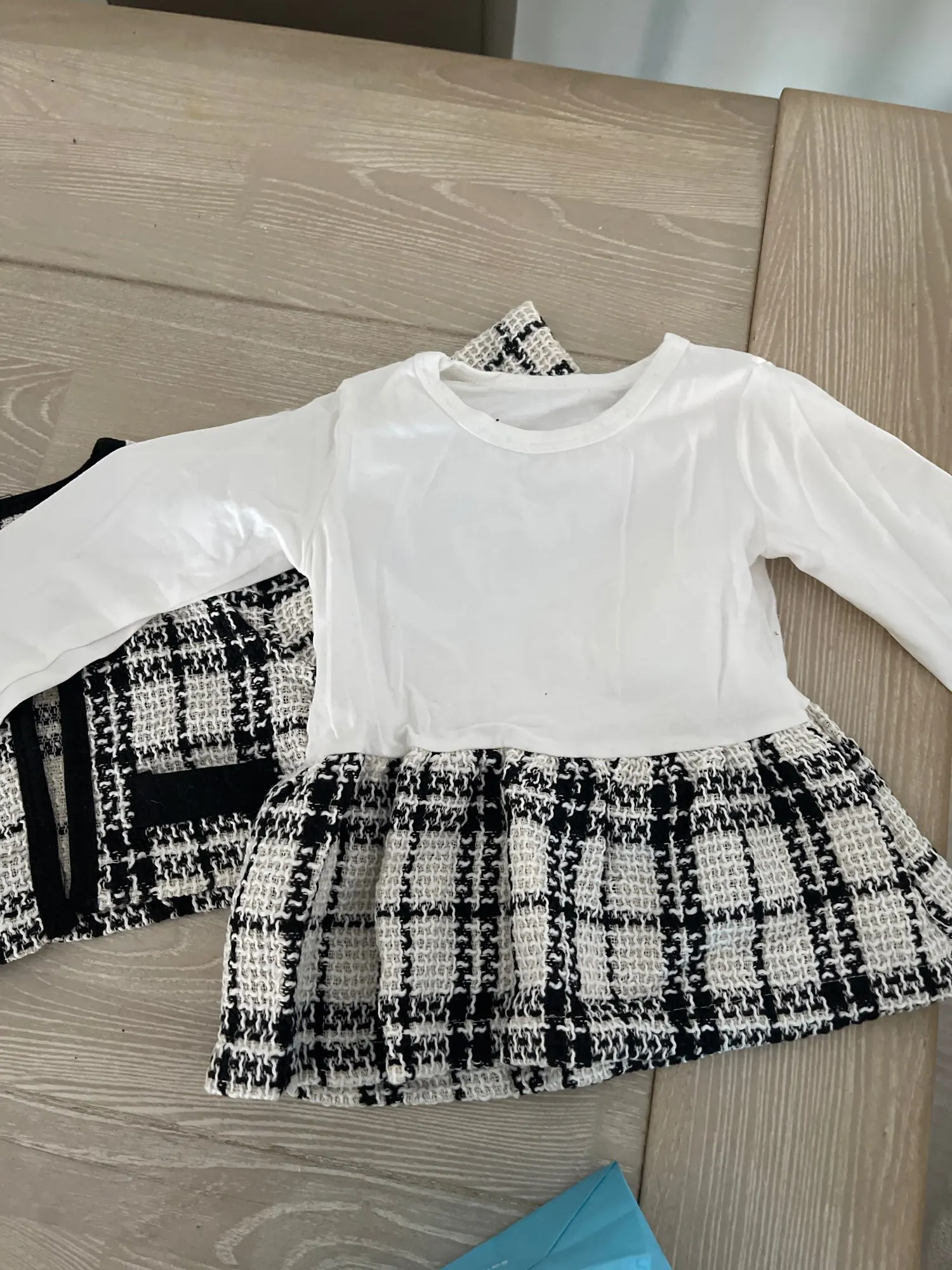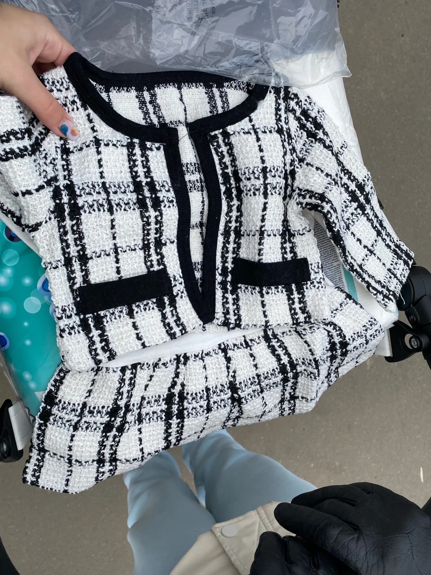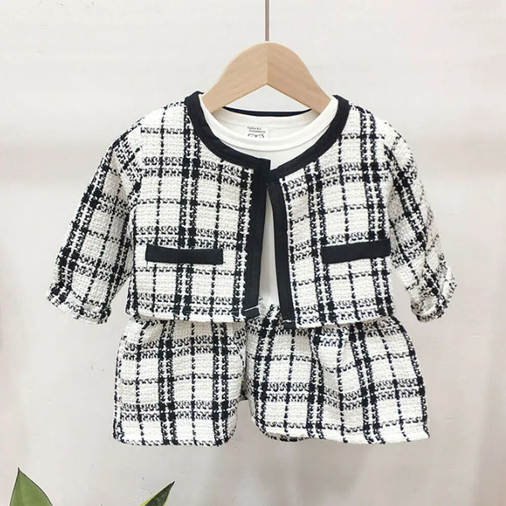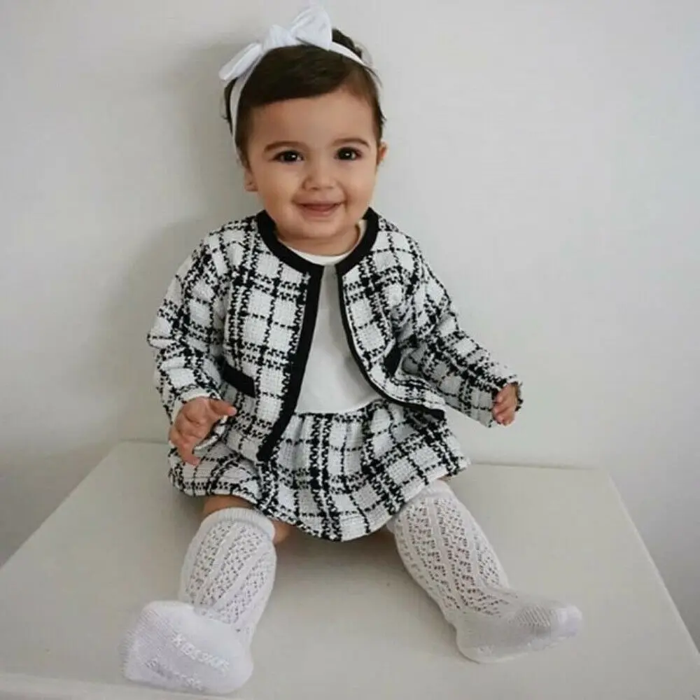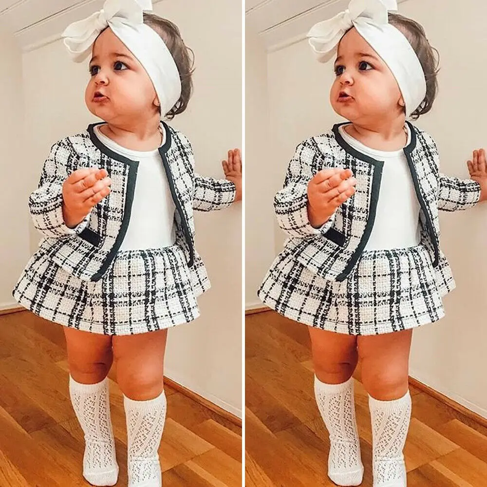 В 2019 году, новые брендовые Осенние Топы для маленьких девочек, клетчатое пальто и платье-пачка официальный комплект одежды из 2 предметов