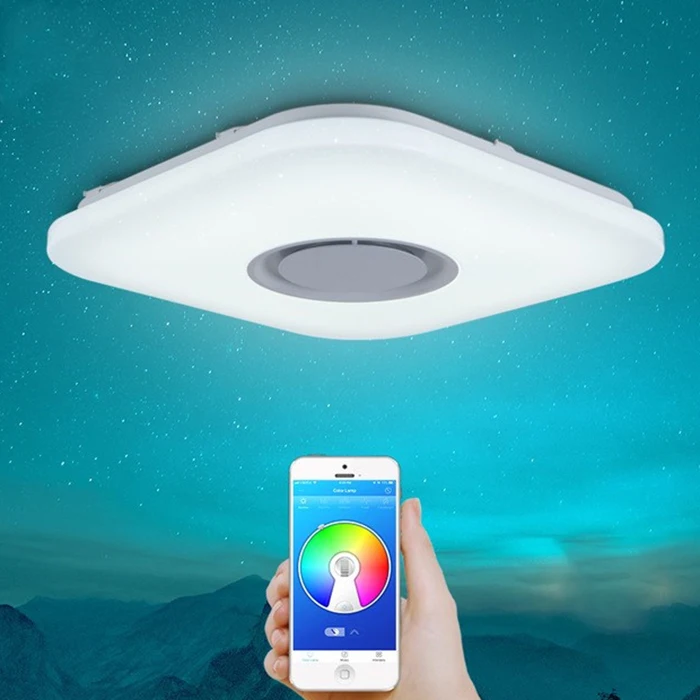Спецификация • Мощность: 36 Вт/52 Вт • Входное напряжение: 95 - 265 в • Индекс цветопередачи: больше или равен Ra80 • Цветовая температура: 3000k - 6500K + RGB • Люмен: 36 Вт: 2160лм ± 10%, 52 Вт: 3000лм ± 10% • Диапазон беспроводного приемника: 15 м • Мощность динамика: 4 евро/5 Вт • Подключение к приложению: Bluetooth • Пульт дистанционного управления: 2,4G • Пульт дистанционного управления: Требуется 2 батареи AA (не включена) • Название приложения: ilamp • Метод загрузки: отсканируйте qr-код в руководстве • Потолочный светильник мощностью 36 Вт для 10 - 16 квадратных метров. Подходит для фойе/спальни/кухни • Потолочный светильник мощностью 52 Вт для 15 - 25 квадратных метров. Просторные комнаты, такие как гостиная, спальня, кабинет