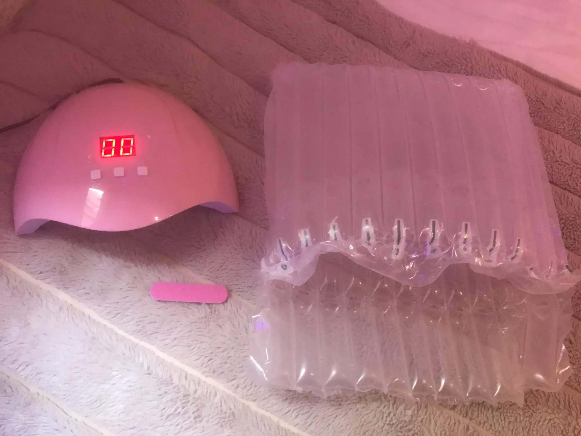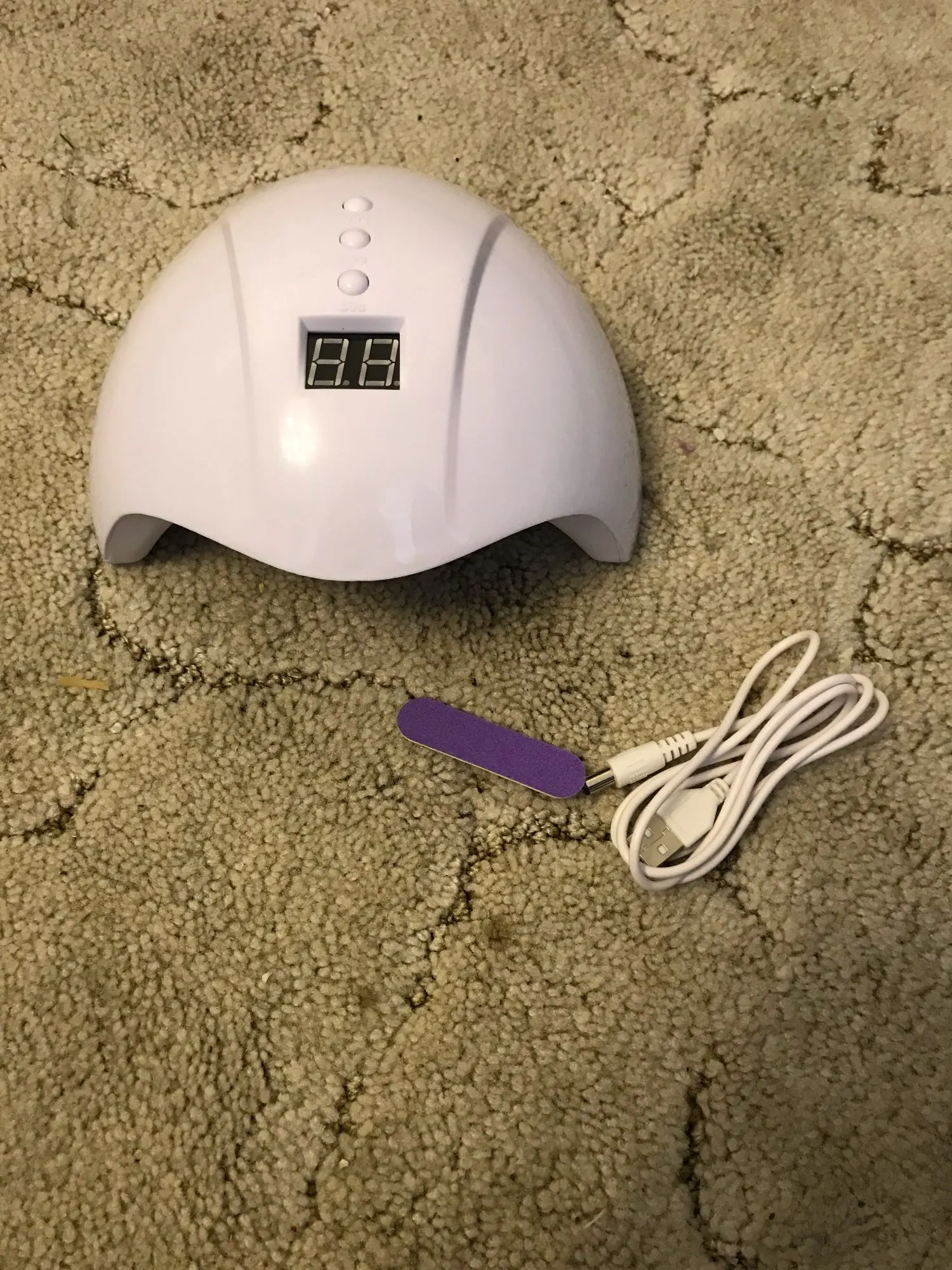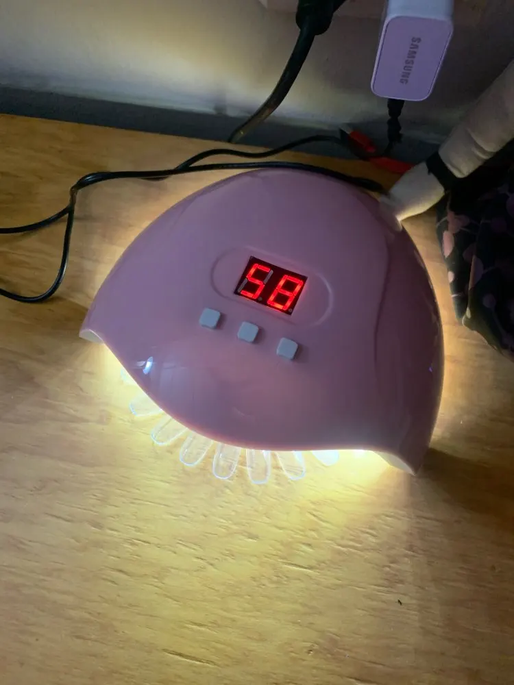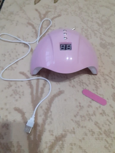 Хорошая простая лампа по хорошей цене. Мне нравится, насколько хорошо эта лампа работает при отверждении лака, которую я использую (геллифит). Продавец также включает в себя хороший маленький подарок, который был милым фиолетовым пилочкой для ногтей.