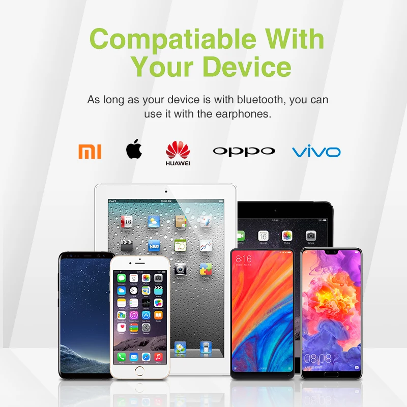 -Легкий корпус, большая емкость аккумулятора. -Вращение на 270 градусов, использование левого и правого уха. -Подвесной Тип уха, удобно носить. -20 часов длительной мощности, удовлетворяют потребности в течение всего дня. -Водонепроницаемая и Пылезащитная, Бесстрашная Спортивная потливость. -Двойное шумоподавление, вызов четкий и не пропущен. -Металлическая конструкция, тщательное качество звука. -Цельная кнопка, простая операция без отвлечения внимания. -Дисплей питания, поддержка системы iOS и некоторых устройств Android в режиме реального времени. -Подключение двух устройств, одновременное подключение двух устройств Bluetooth. -Совместимость с различными мобильными телефонами и системами. -Гуманная Интимная Голосовая подсказка, понять состояние гарнитуры в любое время. Тип: bluetooth-наушники Версия Bluetooth: V4.1 + EDR, совместима с V3.0, V2.1, V1.1 Мощность передачи: класс 2 Частота передачи: 2,4 ГГц Расстояние передачи: 10 метров Время работы в режиме ожидания: около 250 часов Время зарядки: 1-2 часа Время вызова: 8 часов Воспроизведение музыки: 10 часов Соглашение о поддержке: HFP/HSP/A2DP/AVRCP/APT-X Источник питания: 1 x Аккумулятор 150 мАч (в комплекте) Характеристики: Универсальный, беспроводной, защита от пота, тип ушного крючка Размеры: 5 см х 5 см/1,97 "x 1,97" (прибл.) Упаковочный лист: 1 х Наушники 2 x ушные колпачки 1 х USB кабель 1 x Руководство пользователя