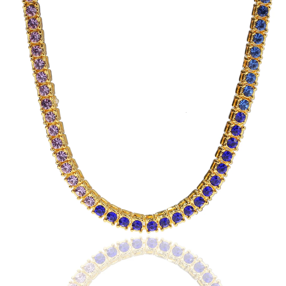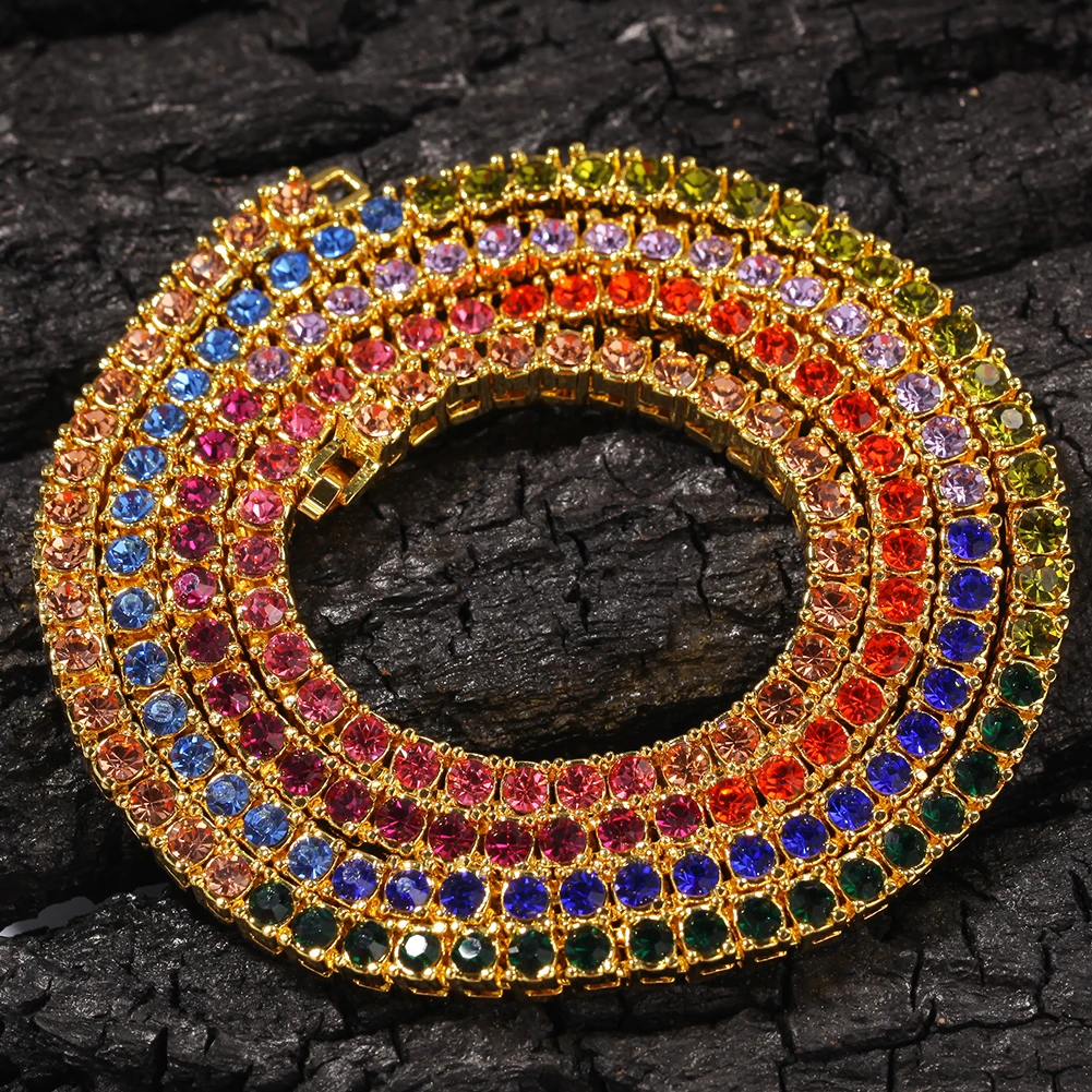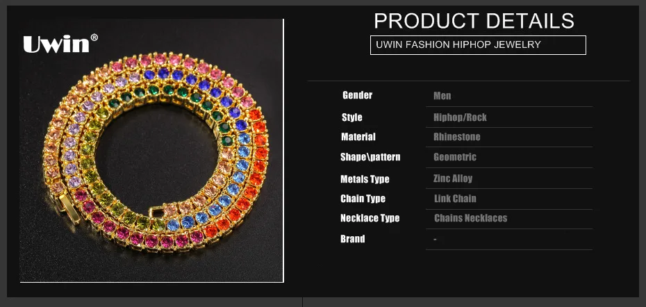 Ожерелье унисекс UWIN, разноцветные стразы, теннисная цепочка, хип-хоп, бижутерия, Прямая поставка