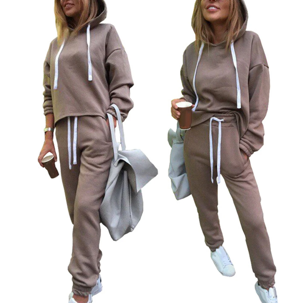 Женский теплый спортивный костюм из 2 предметов, толстовка с длинным рукавом и штаны, однотонный топ, спортивный костюм