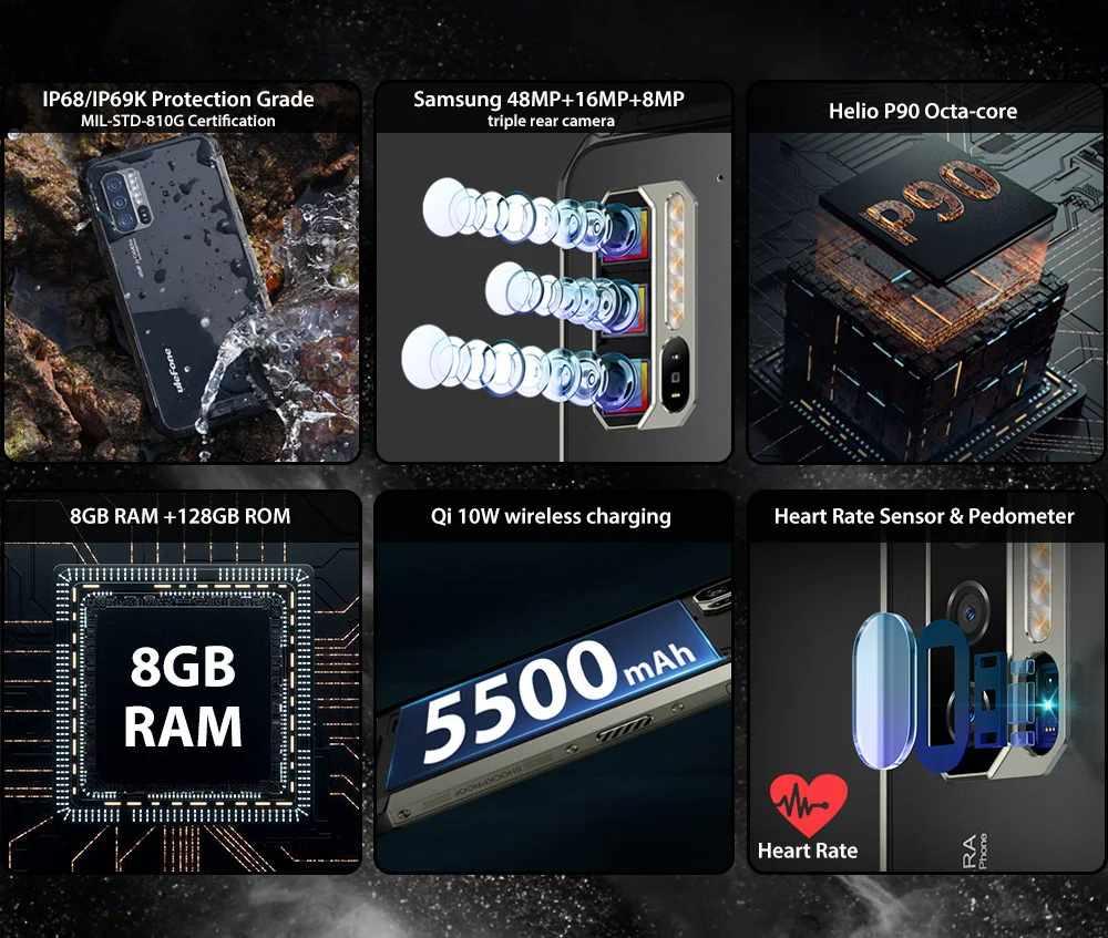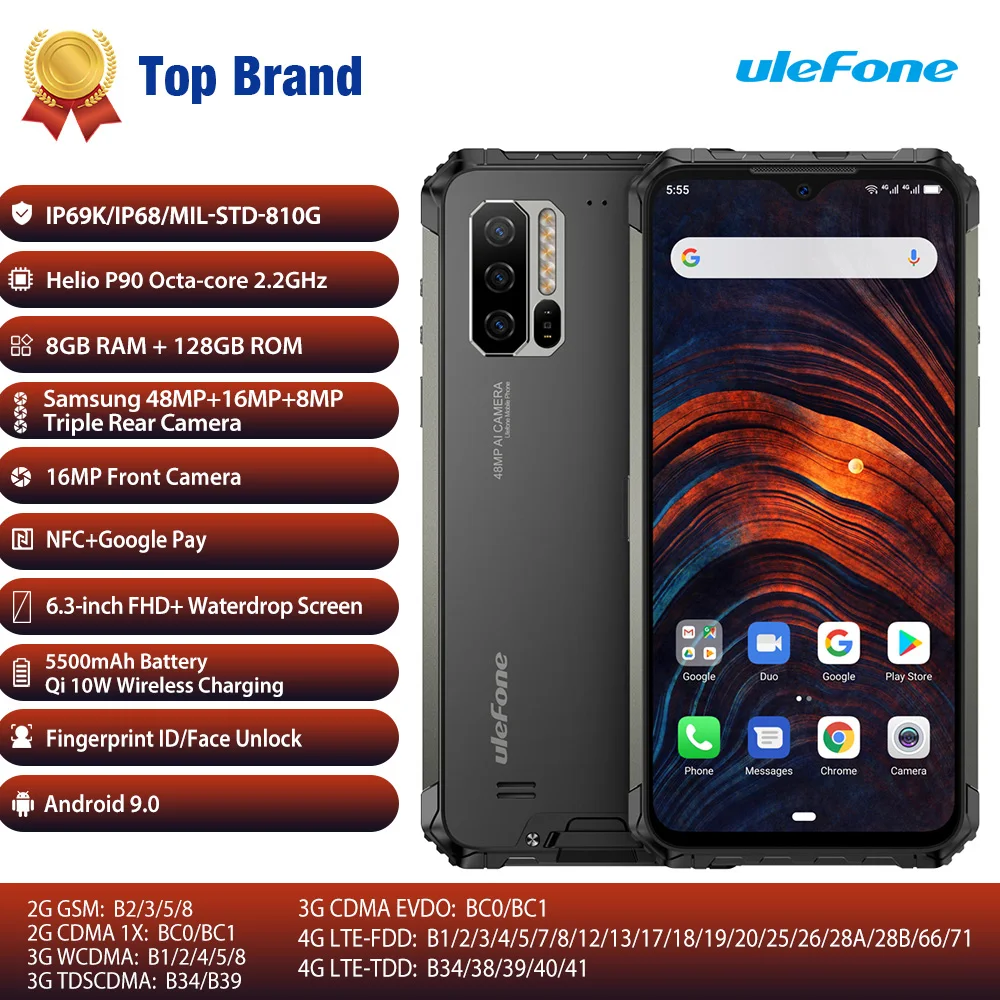 Ulefone Armor 7 смартфон с 6.3-дюймовым дисплеем, восьмиядерным процессором Helio P90, ОЗУ 8 Гб, ПЗУ 128 ГБ, 48 МП, 5500 мАч