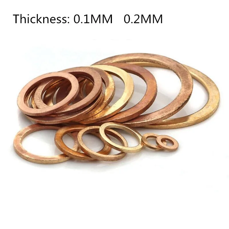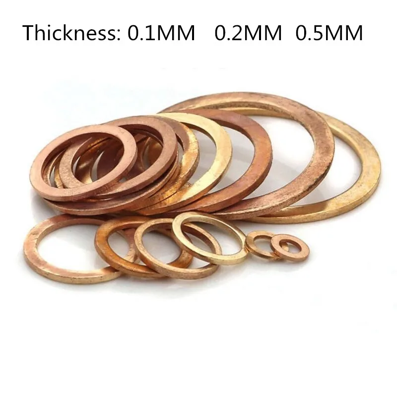 Толщина 0,1 мм 0,2 мм ультра-тонкие однотонные Медь плоская уплотнительная кольцевая прокладка приемный штекер сальник фитинги шайбы