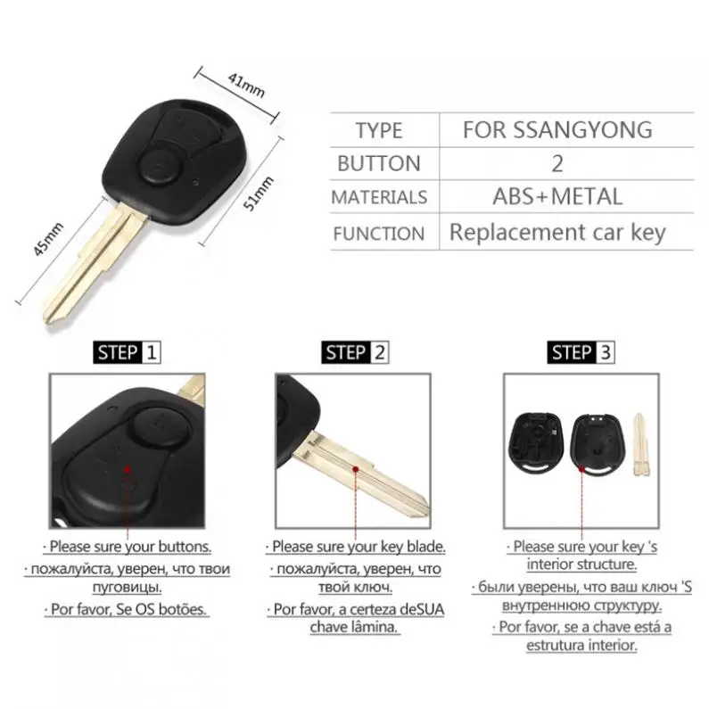 Чехол для автомобильного брелока с 2 кнопками, Сменный Чехол для пульта дистанционного управления, подходит для SSANGYONG ACTYON KYRON REXTON