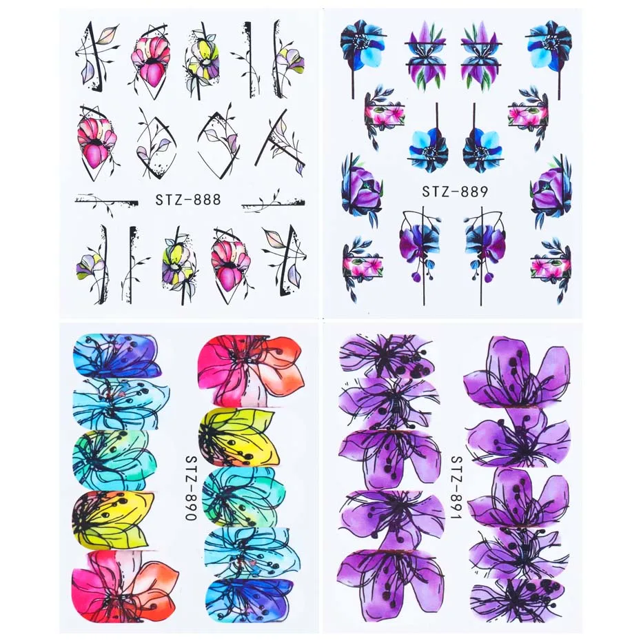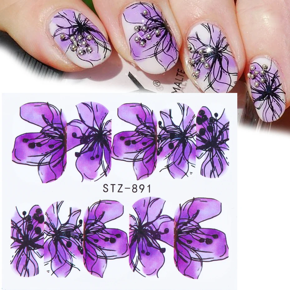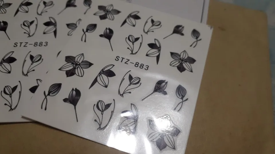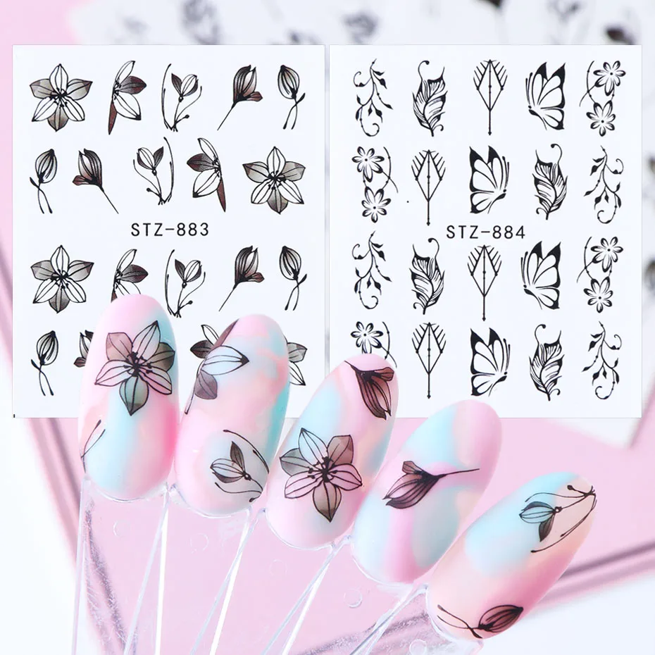 Переводные наклейки для ногтей, 1 шт., черные Цветочные Переводные картинки, цветы, листья, украшения для дизайна ногтей, Слайдеры для маникюра TRSTZ880-902