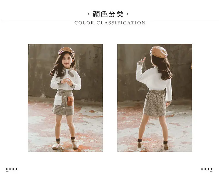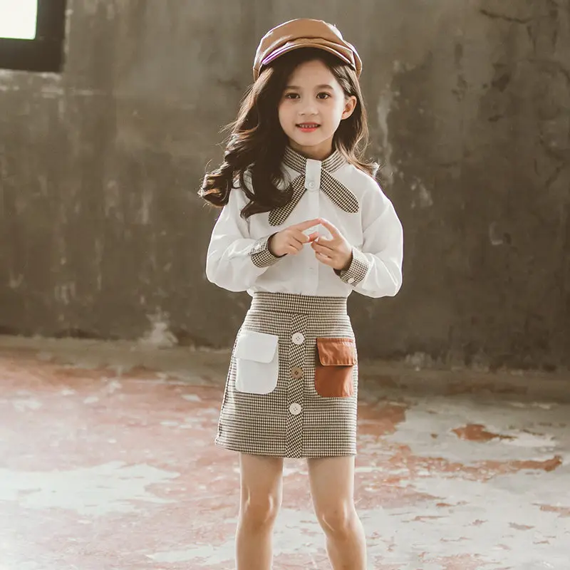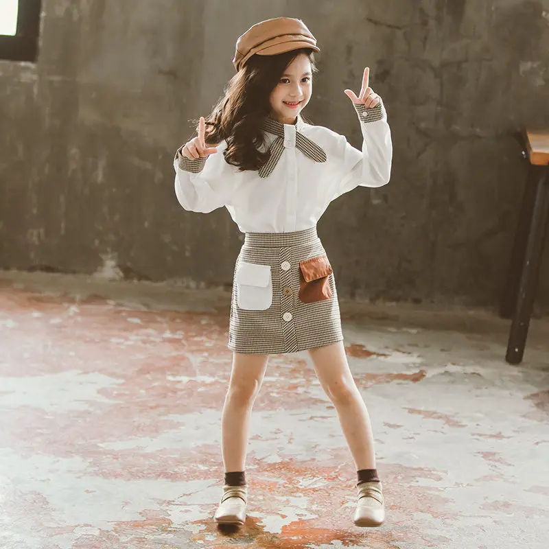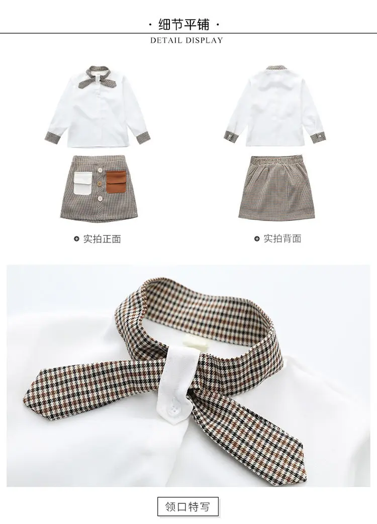 Комплект одежды для девочек, блузка с бантом + клетчатая юбка, одежда из 2 предметов для девочек-подростков на весну и осень, одежда для девочек 4, 5, 7, 9, 11, 13 лет