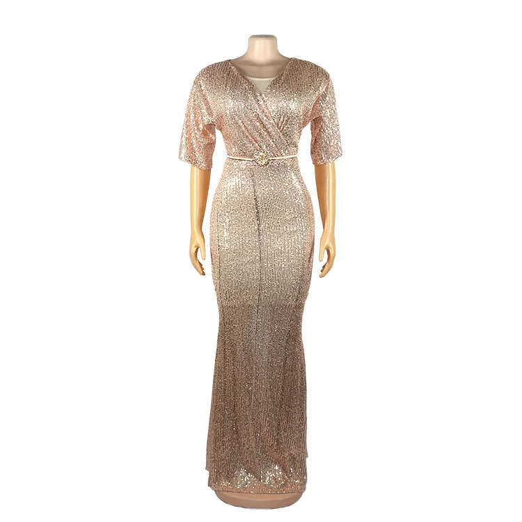 Новинка 2019, Осеннее элегантное модное платье в африканском стиле с V-образным вырезом, женское длинное платье