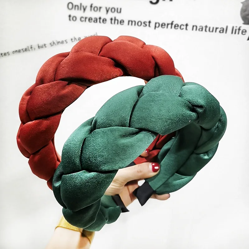 Повязка на голову женская, из плотной губчатой шелковой ткани, тюрбан, аксессуар для волос, плетеная резинка для волос