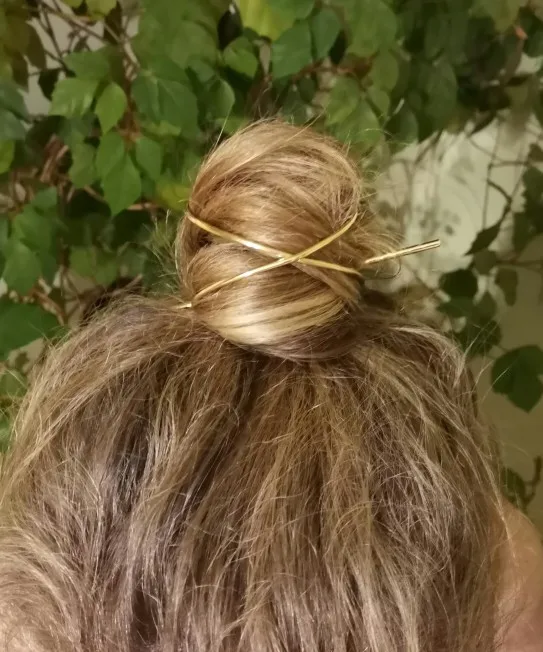 Заколка с двойной спицей хорошо держит пучок даже пышных волнистых волос. Заказ в Москву пришёл быстро, где-то за 2 недели.