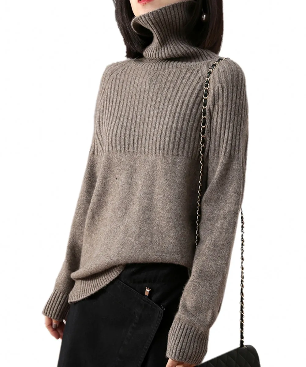 Свитер, женские пуловеры с высоким воротником, однотонный стрейчевый полосатый корейский топ, Вязаная Осень-зима 2022, шерстяная одежда бежевого и хаки