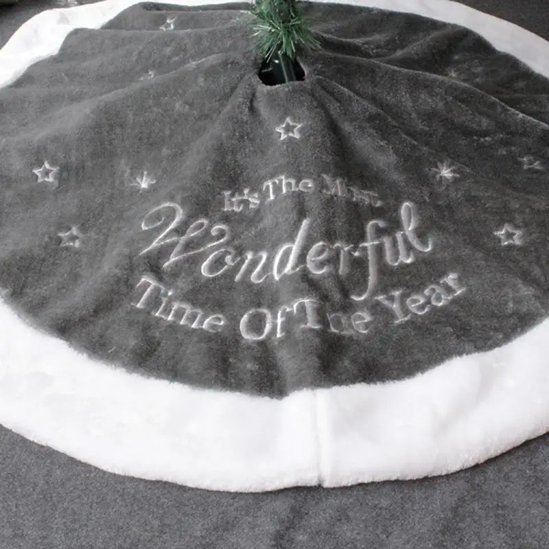 Коврик из флиса для рождественской елки, 90 см, серый меховой ковер, нетканый, украшения для рождественской вечеринки, рождественские украшения, декоративный фартук